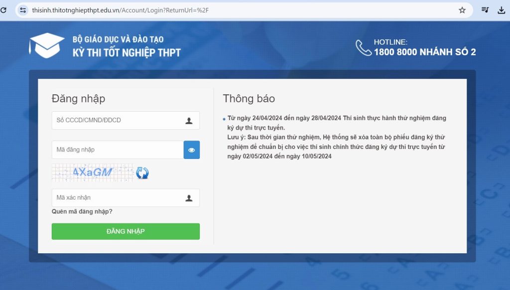 Tài khoản là số căn cước công dân (CCCD) hoặc chứng minh nhân dân (CMND) hoặc mã số định danh cá nhân (ĐDCN) do cơ quan công an cấp. Đối với thí sinh không có CCCD/CMND/ĐDCN hoặc không có quốc tịch Việt Nam thì sử dụng số hộ chiếu của thí sinh để thay thế (trường hợp này hệ thống sẽ gán cho thí sinh mã số gồm 12 ký tự để quản lý).