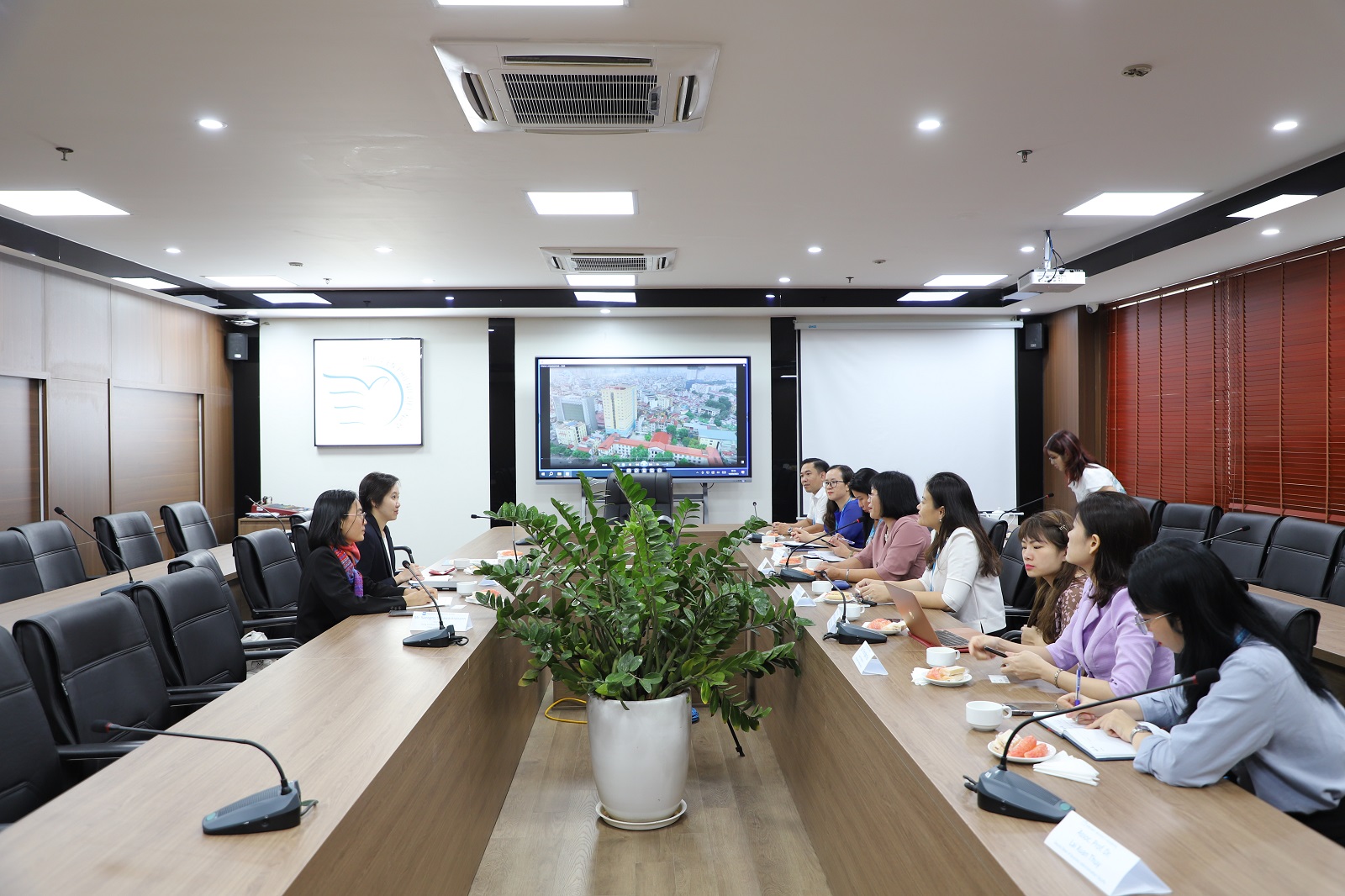 Đại diện Học viện, TS. Dương Kim Anh – Phó Giám đốc Học viện cùng lãnh đạo phòng Hợp tác Quốc tế & Quản lý khoa học, Viện Công nghệ thông tin, khoa Quản trị kinh doanh, khoa Giới và phát triển đã đón tiếp đoàn. Về phía đối tác có sự hiện diện của Bà Sattiya Langkhapin – trưởng đại diện đoàn EDC cùng cộng sự.