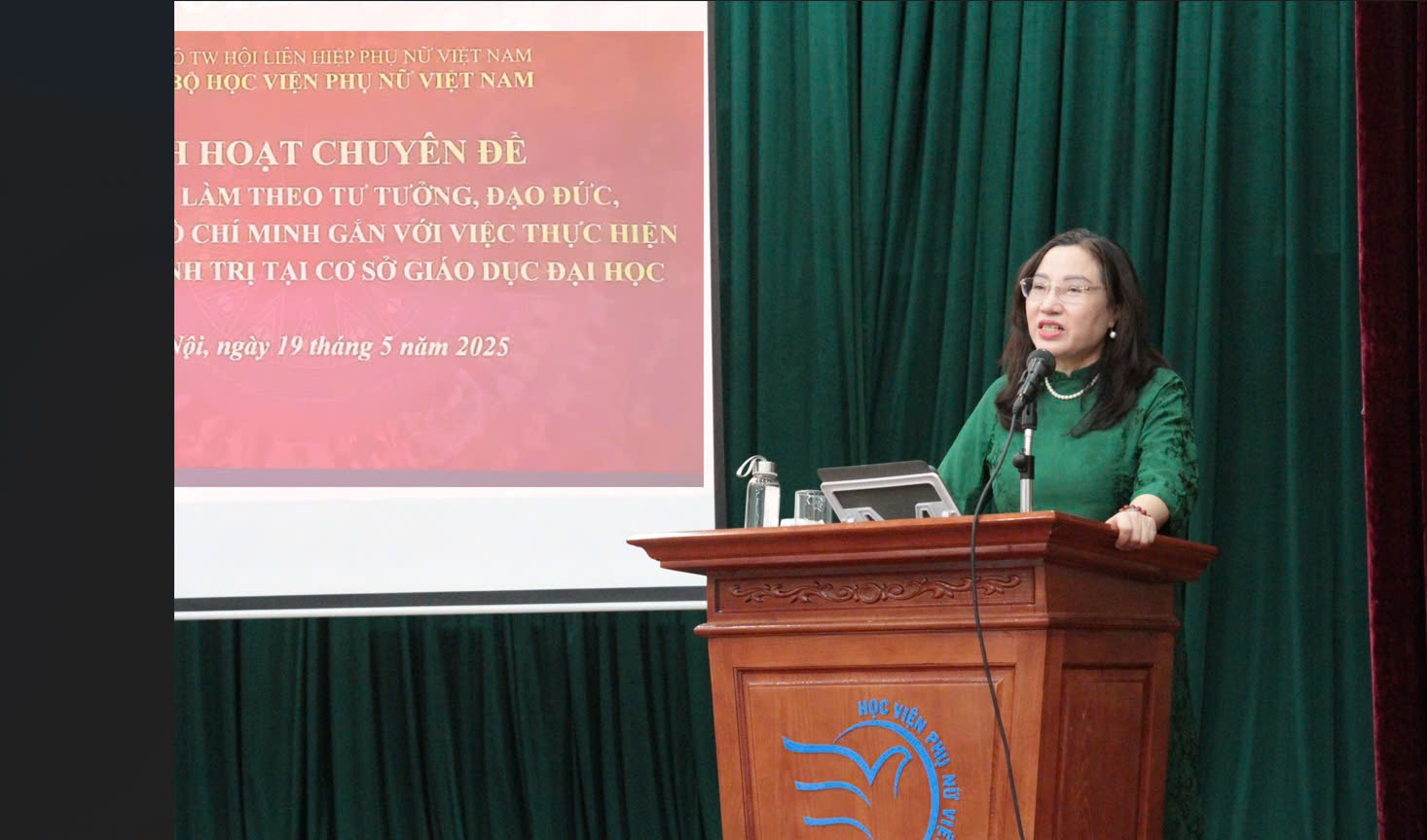 Phát biểu tại buổi sinh hoạt, PGS.TS. Trần Quang Tiến nhấn mạnh nội dung chuyên đề không chỉ giúp cán bộ, đảng viên và sinh viên Học viện Phụ nữ Việt Nam hệ thống hóa những nội dung cốt lõi trong tư tưởng, đạo đức và phong cách Hồ Chí Minh mà còn góp phần nâng cao nhận thức chính trị, đạo đức công vụ và tinh thần trách nhiệm trong thực hiện nhiệm vụ tại Học viện Phụ nữ Việt Nam.