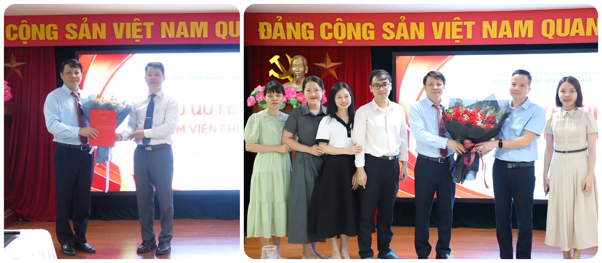 Các viên chức được bổ nhiệm gửi lời cảm ơn sự tin tưởng, tín nhiệm của Ban Giám đốc, tập thể cán bộ, viên chức của Học viện và hứa sẽ hoàn thành tốt nhiệm vụ được giao, đóng góp vào sự phát triển chung của Học viện Phụ nữ Việt Nam trong thời gian tới.