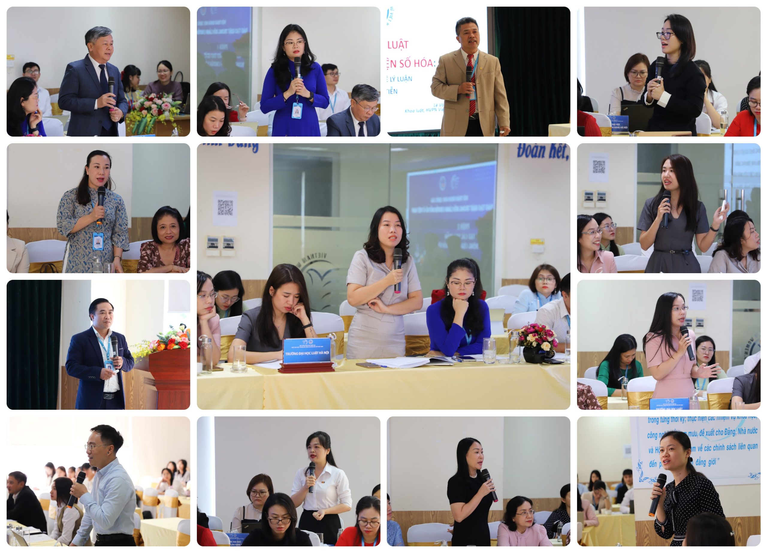 Sau phần trình bày các tham luận tại các phiên thảo luận, các chuyên gia, giảng viên và đại biểu tham dự, đã tham gia phần thảo luận sôi nổi, đa chiều. Thực trạng vấn đề về ứng dụng công nghệ số, trí tuệ nhân tạo (AI) trong nghiên cứu, giảng dạy và đánh giá năng lực của sinh viên ngành Luật đã được chia sẻ chi tiết. Các chuyên gia đã cùng nhau phân tích những lợi ích và thách thức mà công nghệ số mang lại đối với quá trình học tập của sinh viên, từ việc nâng cao chất lượng giảng dạy cho đến việc tối ưu hóa công tác đánh giá. Đặc biệt, các ý kiến xoay quanh việc tích hợp AI trong việc phân tích các tình huống pháp lý, hay sử dụng phần mềm tự động hóa trong kiểm tra và đánh giá năng lực sinh viên đã thu hút sự quan tâm lớn.
