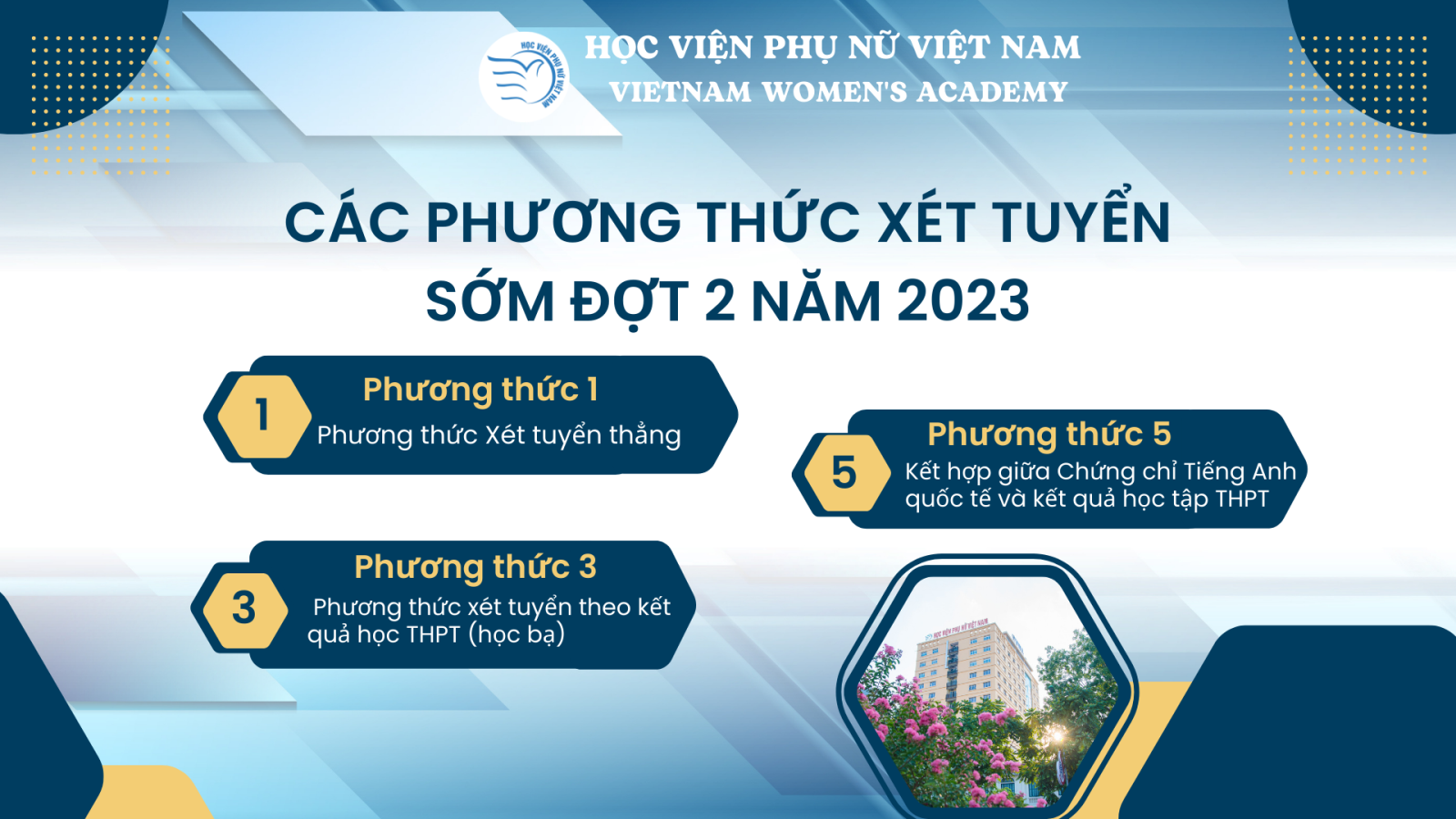 Với đợt xét tuyển sớm lần 2, Học viện Phụ nữ Việt Nam áp dụng 3 phương thức xét tuyển dưới đây: