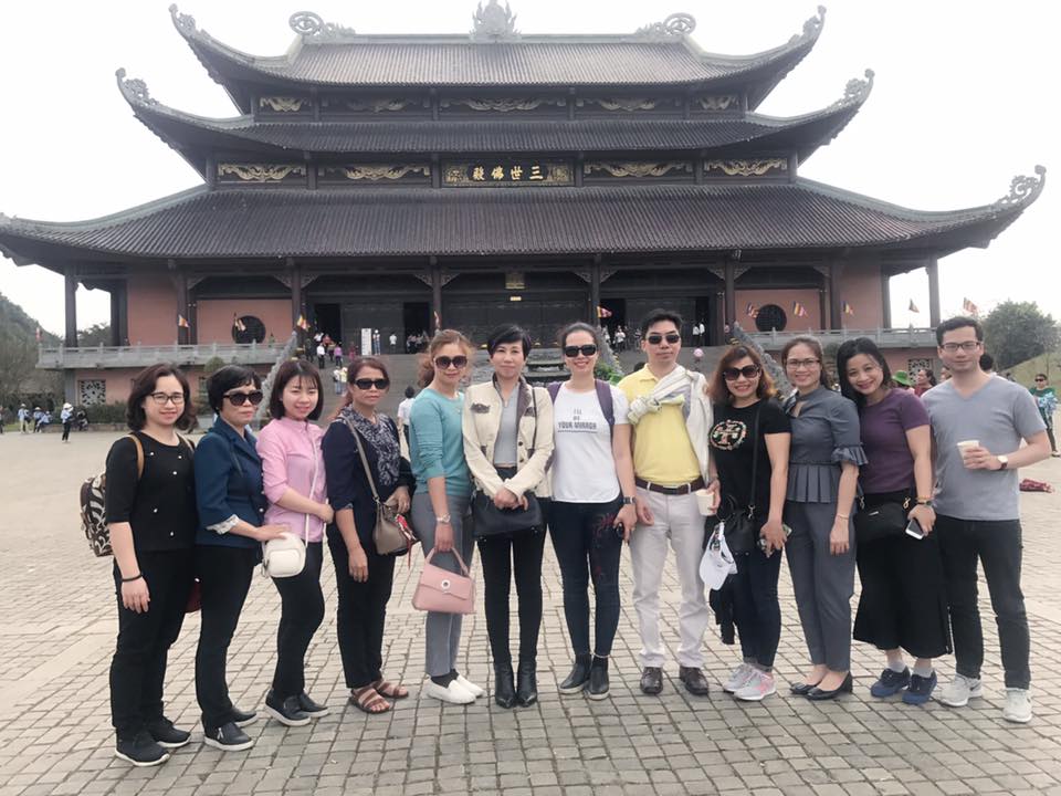 Sau đó, đoàn đã đến lễ tại Chùa Bái Đính, là ngôi chùa lớn nhất Việt Nam, được biết đến với nhiều kỷ lục như tượng Phật bằng đồng lớn nhất Đông Nam Á, chuông đồng lớn nhất Đông Nam Á, hành lang có nhiều tượng Phật nhất…là sự tiếp nối tâm linh từ ngàn năm trước chuyển tiếp đến ngàn năm sau. Đây cũng chính là nơi mà Quốc sư Nguyễn Minh Không thời nhà Lý tu Phật và hành lễ trên đỉnh núi rồi đặt tên cho núi, cho chùa.