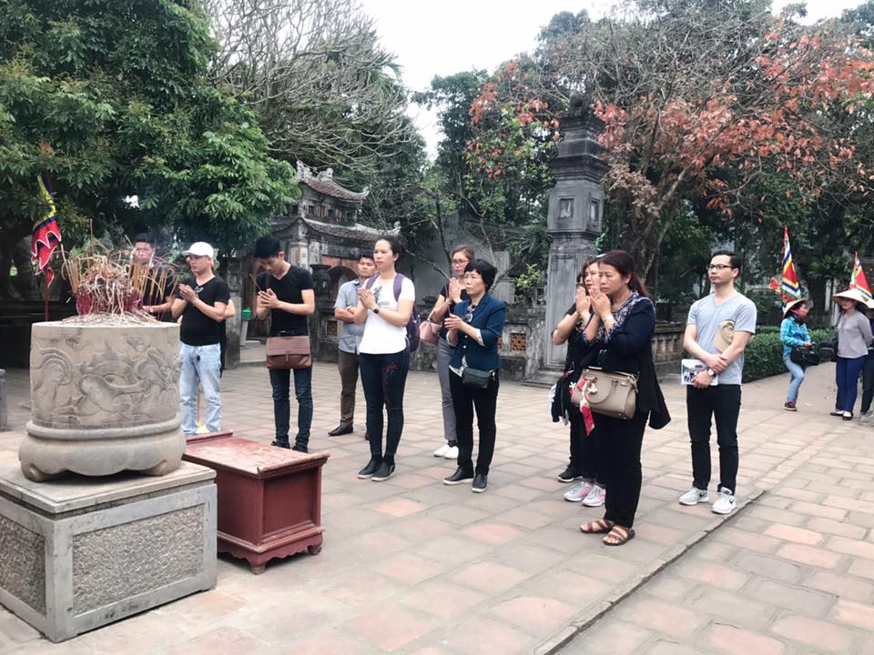 Cuối cùng, đoàn đến dâng hương tại Đền Vua Đinh Tiên Hoàng, một di tích quan trọng thuộc vùng bảo vệ đặc biệt của quần thể di sản cố đô Hoa Lư. Ngôi đền được xây dựng để thể hiện lòng kính trọng của nhân dân ta với vị vua khai quốc công thần, dẹp loại 12 sứ quân, lập nên nhà nước phong kiến tự chủ đầu tiên ở Việt Nam. Từ Đền Vua Đinh, đoàn tiếp tục dâng hương tại Đền Vua Lê Đại Hành với nét độc đáo ở đền là nghệ thuật chạm gỗ thế kỷ 17 đã đạt đến trình độ điêu luyện, tinh xảo.