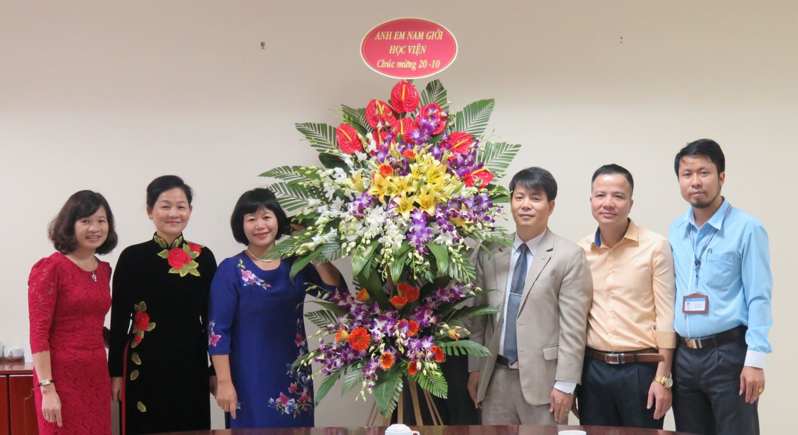 TS. Trần Quang Tiến đại diện cho nam giới Học viện tặng hoa chúc mừng phụ nữ Học viện và hy vọng các chị em tiếp tục phát huy truyền thống tốt đẹp, phấn đấu rèn luyện phẩm chất ‘Tự tin – tự trọng – trung hậu – đảm đang’ trong thời đại mới, xây dựng người phụ nữ Việt Nam yêu nước có tri thức, có sức khoẻ, năng động, sáng tạo, có lối sống văn minh, có lòng nhân hậu, tiếp tục đóng góp vào sự nghiệp xây dựng và phát triển học viện nói riêng và đất nước nói chung trong thời kỳ hội nhập và phát triển.