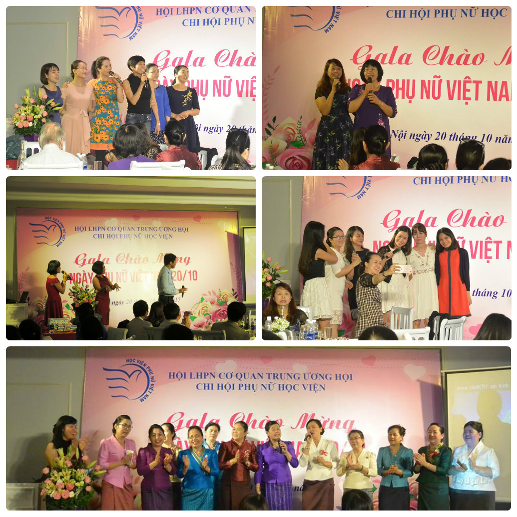 Tại gala, đại diện các tổ phụ nữ đã tham gia tranh tài dự thi các tiết mục văn nghệ sôi nổi, hấp dẫn chào mừng ngày Phụ nữ Việt Nam. Mỗi tiết mục đều thể hiện tài năng, sự duyên dáng của chị em phụ nữ học viện. Không chỉ là những tiết mục dự thi, những bài ca tiếng hát còn mang lại không khí vui tươi, đầm ấm, hạnh phúc với những ấn tượng khó quên trong lòng tất cả mọi người tham dự gala.Đặc biệt, các chị học viên Lào và nam giới của Học viện cũng đã sôi nổi tham gia các tiết mục văn nghệ cùng chị em.