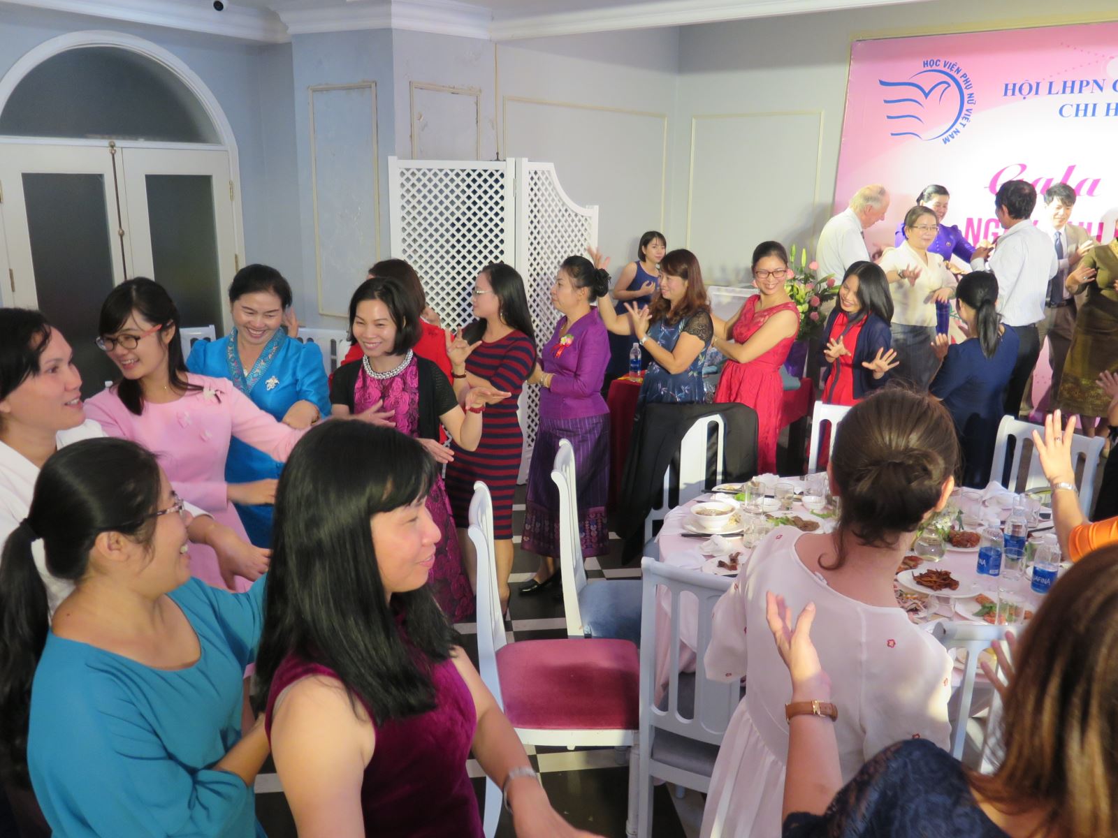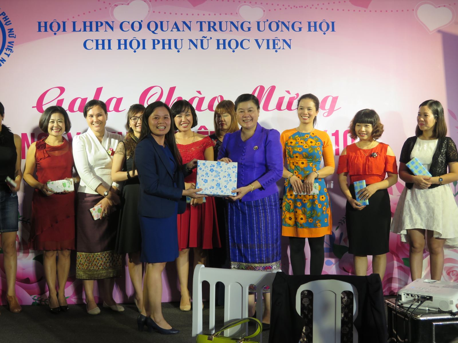 Các chị học viên Lào chúc mừng chị em học viện ngày 20/10