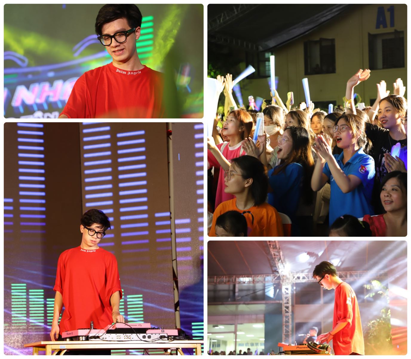 Càng về cuối chương trình, khán giả lại càng thêm cháy lửa với màn DJ sôi động của chàng DJ điển trai Đức Mạnh. Không khí của đại nhạc hội nóng hơn bao giờ hết. Thầy cô và các bạn sinh viên bỏ lại sau lưng mọi lo lắng, vất vả để cùng hòa chung vào những giai điệu âm nhạc.
