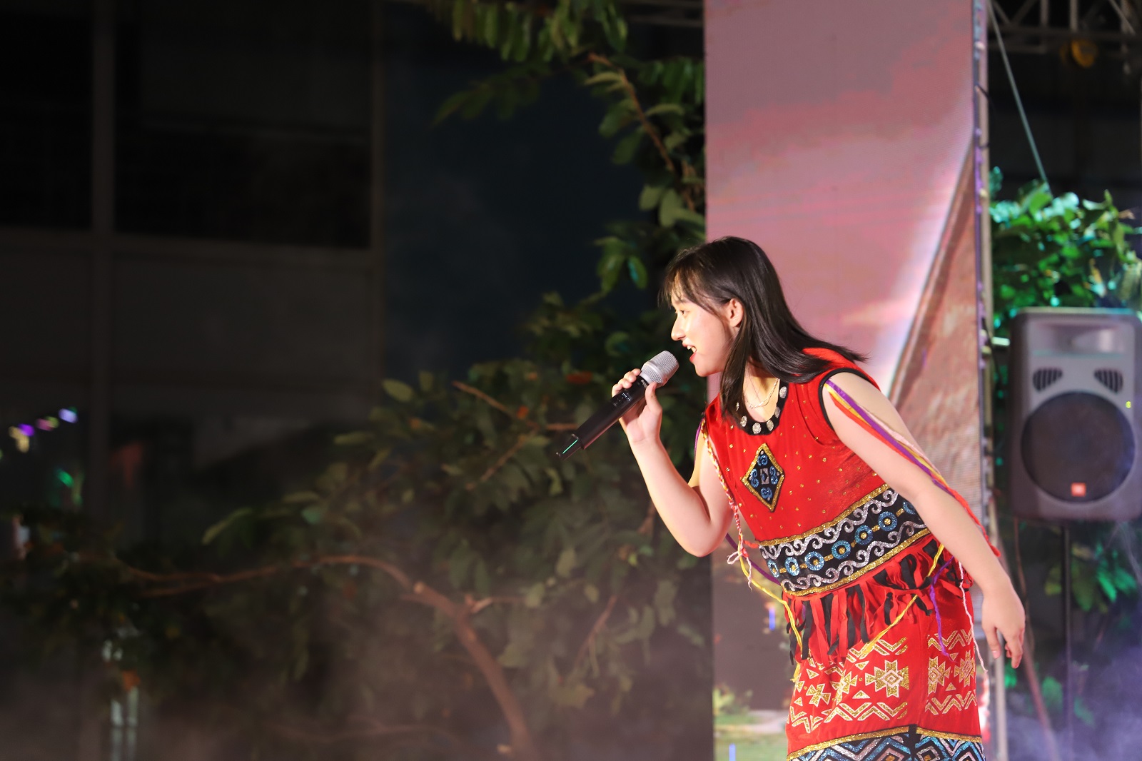 Với phong cách tươi trẻ, tự tin và bản lĩnh sân khấu, Huệ Như (tân sinh viên Khóa 11 ngành Quản trị dịch vụ du lịch lữ hành) đã thể hiện xuất sắc ca khúc: Còn thương nhau thì về Buôn Ma Thuột