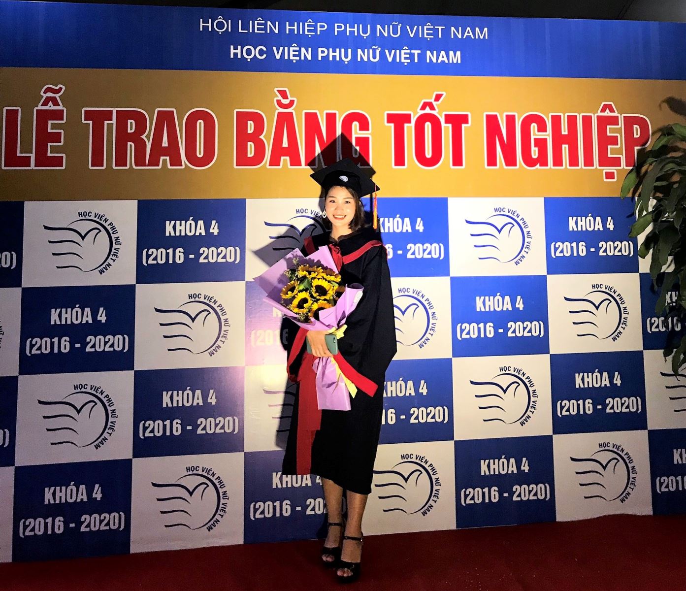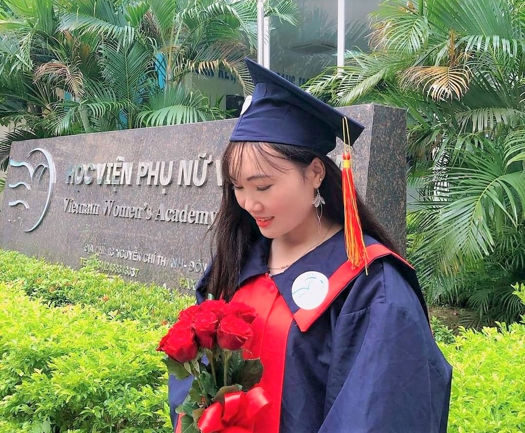 Cử nhân Ngải Chí Phồng với niềm vui ngày tốt nghiệp tại HV Phụ nữ Việt Nam