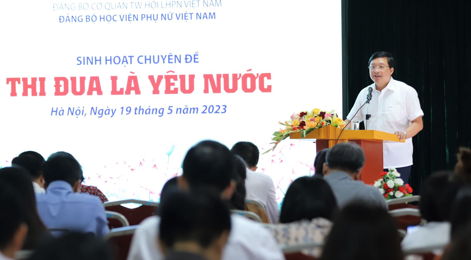 Đại diện Đảng bộ Học viện Phụ nữ Việt Nam, Bí thư Trần Quang Tiến đã ký cam kết thi đua kỷ niệm 75 năm Hồ Chủ tịch ra lời kêu gọi thi đua ái quốc (11/6/1948 – 11/6/2023) và chào mừng kỷ niệm 75 năm Ngày truyền thống Đảng bộ Khối các cơ quan Trung ương (07/11/1948 – 07/11/2023) do Đảng uỷ cơ quan TW Hội LHPN Việt Nam phát động tại chương trình kỉ niệm 133 năm ngày sinh của Bác.