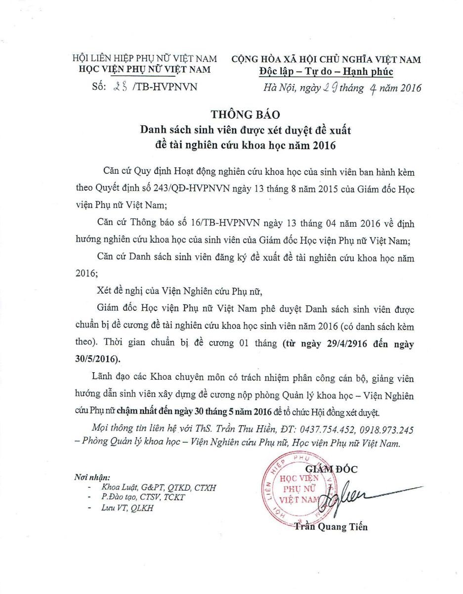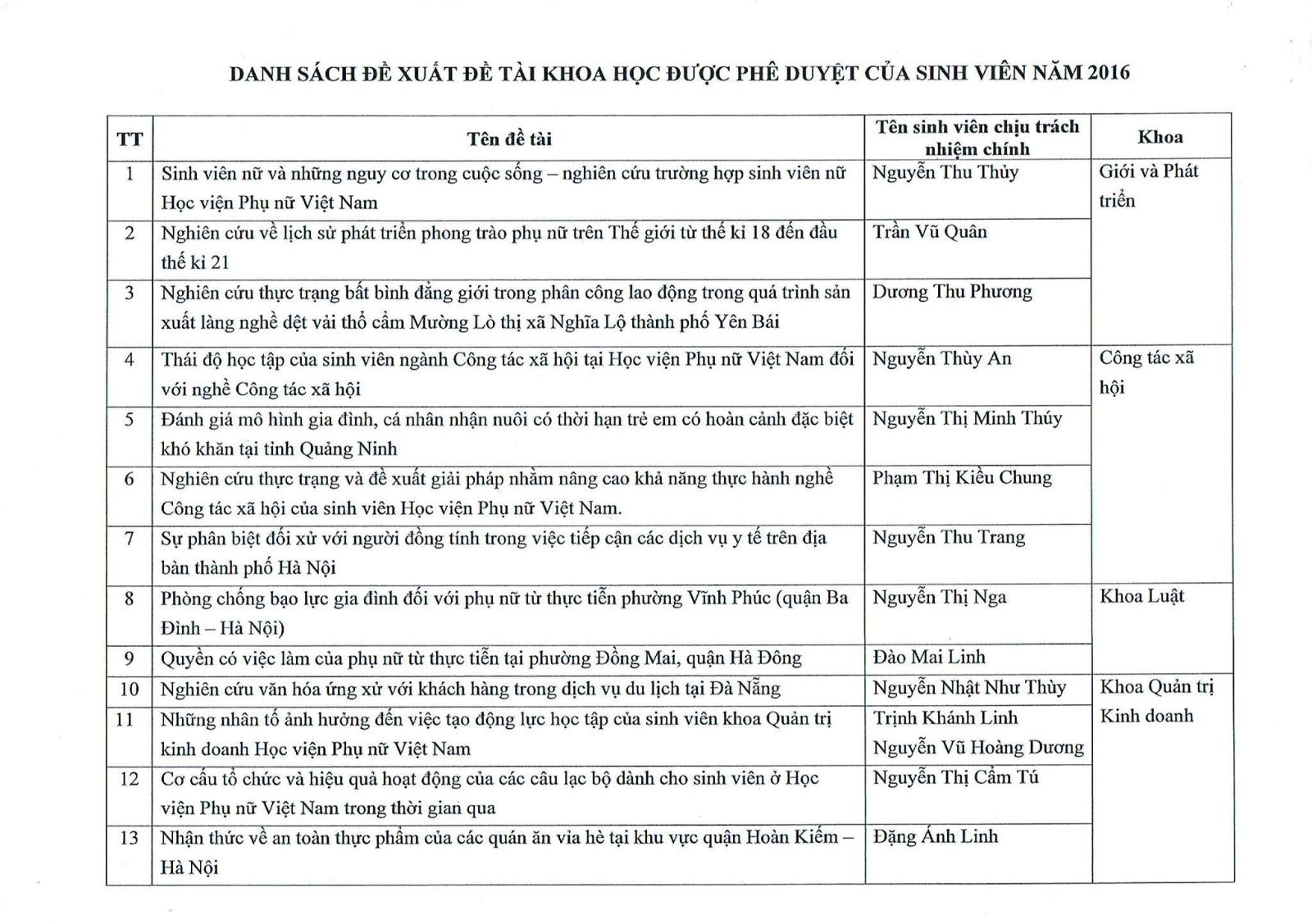 Tin tứcDanh sách sinh viên được xét duyệt đề xuất đề tài NCKH Posted on Tháng Ba 4, 2024 by admin(full) 04 Th3 admin(full) Thông tin về việc liên kết đào tạo và hỗ trợ tuyển sinh năm 2016 Sinh viên Học viện Phụ nữ Việt Nam tích cực hưởng ứng phong trào An toàn Giao thông