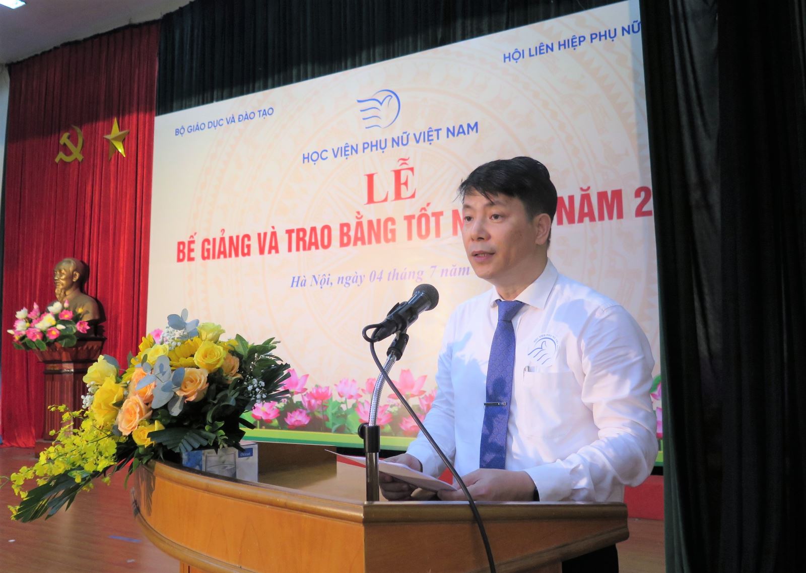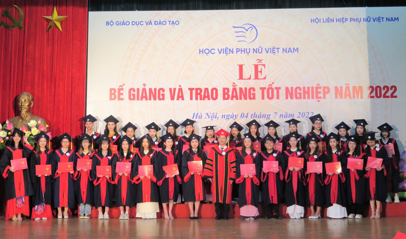 Để đến được Lễ trao bằng tốt nghiệp hôm nay, chúng ta đã trải những học kỳ chưa từng có tiền lệ, phải đối mặt với những khó khăn, thách thức trong bối cảnh đại dịch Covid-19. Năm 2021, Học viện đã không thể tổ chức lễ tốt nghiệp cho các bạn sinh viên khóa 5 cũng như các hệ đào tạo khác. Đầu năm 2022, Học viện cũng đã xét tốt nghiệp cho hơn 100 sinh viên nhưng cũng không thể tổ chức trao bằng do đại dịch vẫn diễn biến phức tạp. Chính vì vậy, lễ trao bằng tốt nghiệp hôm nay là vô cùng ý nghĩa; sự tự hào, niềm vui được nhân đôi khi tại lễ tốt nghiệp này 17 học viên cao học khóa 1 ngành Công tác xã hội và ngành Quản trị kinh doanh cũng được trao bằng tốt nghiệp. Điều này đánh dấu sự phát triển nhanh chóng của Học viện sau 10 năm được thành lập trên cơ sở kế thừa truyền thống hơn 50 năm của Trường Cán bộ Phụ nữ Trung ương. Bất chấp những khó khăn do đại dịch, Học viện đã có sự phát triển mạnh mẽ cả về số lượng và chất lượng, đăng ký và tổ chức đào tạo 11 ngành học hệ đại học, 2 ngành thạc sỹ, 2 chương trình chất lượng cao và liên kết đào tạo. Quy mô đào tạo tất cả các hệ đạt khoảng 4000 sinh viên và hàng năm bồi dưỡng cho hơn 3000 cán bộ Hội. Trong 10 năm thành lập, Học viện đã nhanh chóng đăng ký và đạt kiểm định chất lượng cơ sở giáo dục đại học, vinh dự được tặng thưởng Huân chương lao động hạng Ba, bằng khen và cờ thi đua của Thủ tướng chính phủ, bằng khen của Giám đốc Học viện Chính trị quốc gia Hồ Chí Minh, bằng khen và cờ thi đua của TW Hội LHPN Việt Nam và nhiều thành tích đáng tự hào.