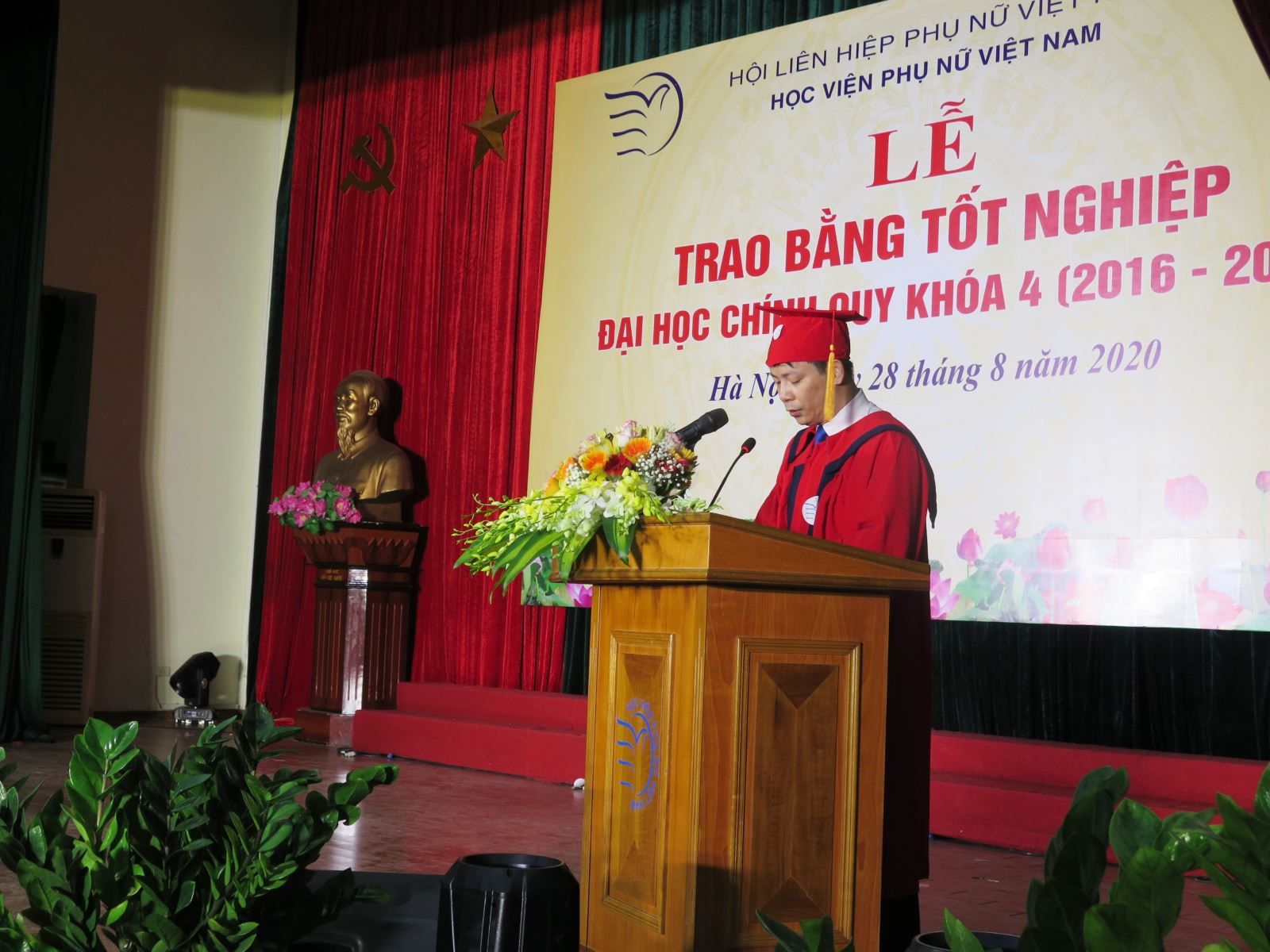 Thay mặt Đảng ủy, Ban Giám đốc Học viện tôi xin tuyên bố bế giảng khóa 4 – Hệ đại học Chính quy (2016-2020) của Học viện Phụ nữ Việt Nam.