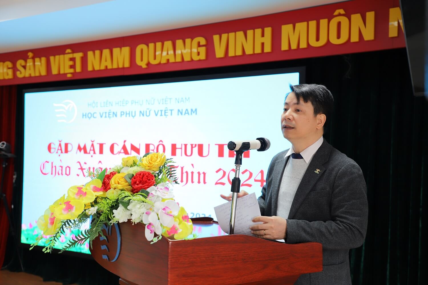 Gửi lời chúc Tết mạnh khỏe, hạnh phúc, an khang, thịnh vượng đến tập thể cán bộ hưu chí và viên chức, người lao động Học viện, Phó Chủ tịch Tôn Ngọc Hạnh bày tỏ sự vui mừng và xúc động trước tình cảm ấm áp của các thế hệ hưu trí và Học viện. Đồng chí tin tưởng rằng kinh nghiệm, trí tuệ, tình cảm của các thế hệ hưu trí sẽ trở thành nền tảng, bệ phóng để Học viện Phụ nữ Việt Nam ngày càng tiến xa hơn trên hành trình đã lựa chọn.