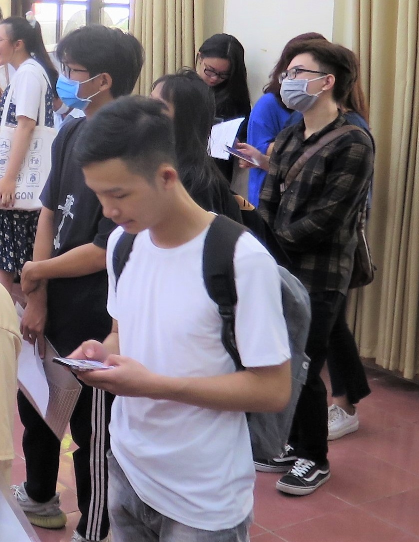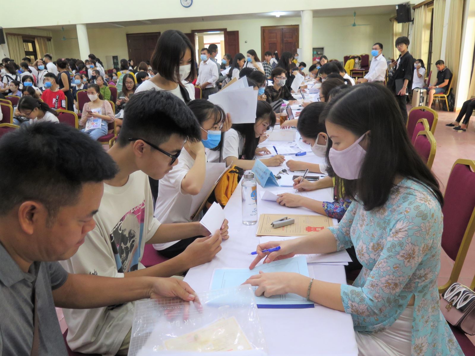 Do đã được thầy cô tư vấn, hướng dẫn chuẩn bị các giấy tờ, thủ tục nhập học qua phương thức online nên khi đến nhập học chính thức, các em nhanh chóng hoàn thành các bước nhận số thứ tự, nộp hồ sơ hoàn thiện, đăng ký làm thẻ sinh viên, đăng ký ở ký túc xá…