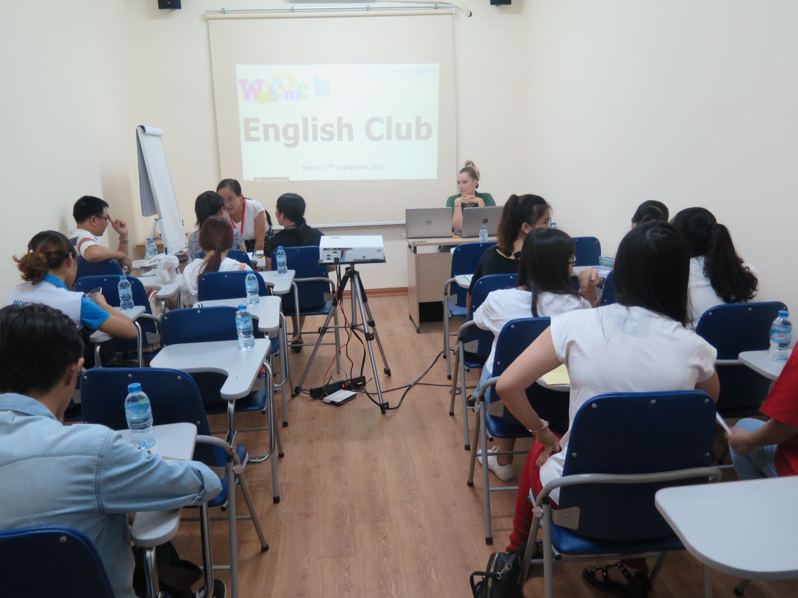 Câu lạc bộ Tiếng Anh dự kiến định kỳ sinh hoạt vào 18h00 – 17h30 tối thứ 5 hàng tuần. Mục tiêu của Câu lạc bộ trong học kỳ I năm học 2017 – 2018 là: Giúp các thành viên nắm vững hệ thống phiên âm, các quy tắc phát âm, từ đó có khả năng phát âm tiếng Anh chuẩn, có ngữ điệu và diễn đạt cảm xúc; Có khả năng giao tiếp và kéo dài câu chuyện với người nước ngoài; Tự tin giao tiếp, ứng xử phù hợp, có thể đưa ra quan điểm cá nhân để tranh luận ngắn về những chủ đề cơ bản; Hình thành niềm đam mê, yêu thích học tiếng Anh.