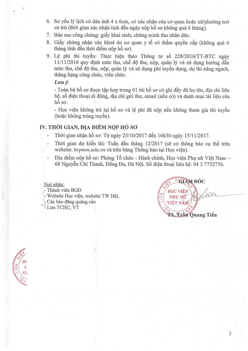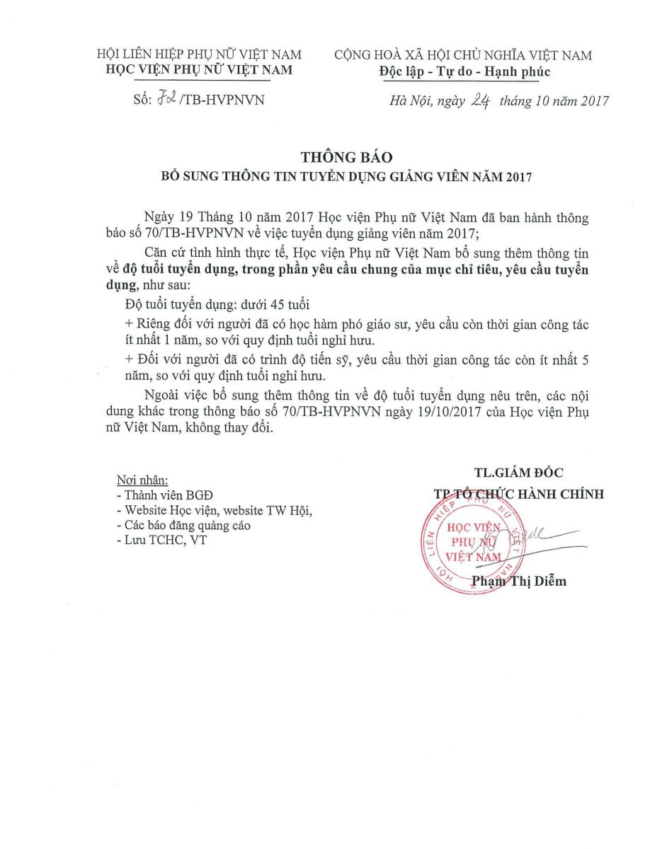 Học viện Phụ nữ Việt Nam thông báo tuyển dụng giảng viên năm 2017