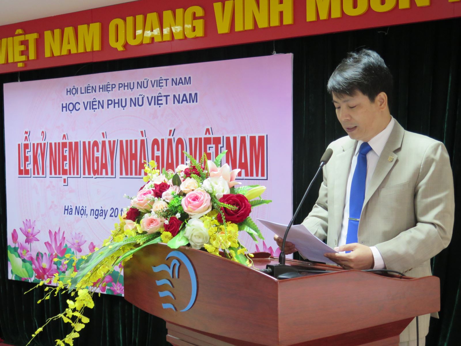 ThS. Trần Thị Hương gửi lời chúc mừng đến tập thể cán bộ, giảng viên Học viện và bày tỏ sự tin tưởng với truyền thống gần 60 năm phát triển, với nguồn tri thức dồi dào, lòng yêu nghề sâu sắc cùng tinh thần nhiệt huyết, sức trẻ, sự sáng tạo của các thầy cô sẽ đưa Học viện Phụ nữ Việt Nam ngày càng phát triển mạnh mẽ và vững vàng; đóng góp ngày càng thiết thực hơn cho các hoạt động của Hội Liên hiệp Phụ nữ Việt Nam.