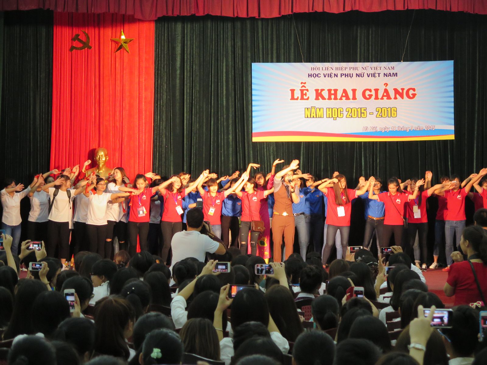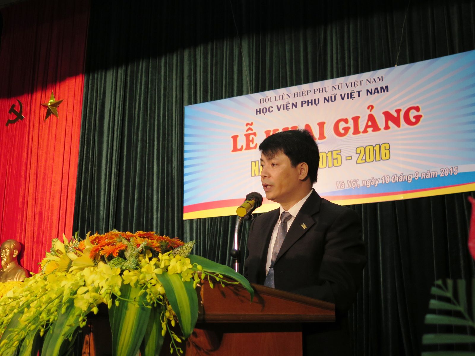 Sau hồi trống khai trường, đồng chí Nguyễn Thị Thanh Hòa đã phát biểu biểu dương thành tích Học viện đạt được trong năm học 2014 – 2015, chúc mừng Học viện đăng ký thành công ngành Luật, mở ngành Giới và phát triển. Đồng chí tin tưởng và mong Học viện sẽ đoàn kết hoàn thành nhiệm vụ năm học 2015 – 2016, đồng thời đã gửi những lời đề nghị chân tình, yêu thương đến sinh viên các khóa, đặc biệt là các em tân sinh viên khóa 3. Đồng chí mong muốn sinh viên Học viện chủ động, sáng tạo về mọi mặt theo hình mẫu thanh niên “Tâm trong. Chí sáng. Hoài bão lớn” để học tốt và tạo dựng cơ hội cho tương lai. Riêng đối với các em nữ sinh, đồng chí trao gửi niềm tin và hy vọng các em không chỉ học giỏi mà còn phấn đấu rèn luyện theo bốn phẩm chất đạo đức của phụ nữ Việt Nam thời kỳ công nghiệp hóa, hiện đại hóa đất nước “tự tin, tự trọng, trung hậu, đảm đam”. Nhân dịp này, thay mặt Đoàn Chủ tịch Hội Liên hiệp Phụ nữ Việt Nam, đồng chí tiếp tục đề nghị Bộ Giáo dục và Đào tạo quan tâm để Học viện trở thành đầu mối tổ chức hoạt động bồi dưỡng nâng cao năng lực tích hợp giới trong các giáo trình, tài liệu, học liệu và kỹ năng bảo đảm bình đẳng giới trong giảng dạy bậc cao đẳng, đại học, sau đại học và giáo dục phổ thông.