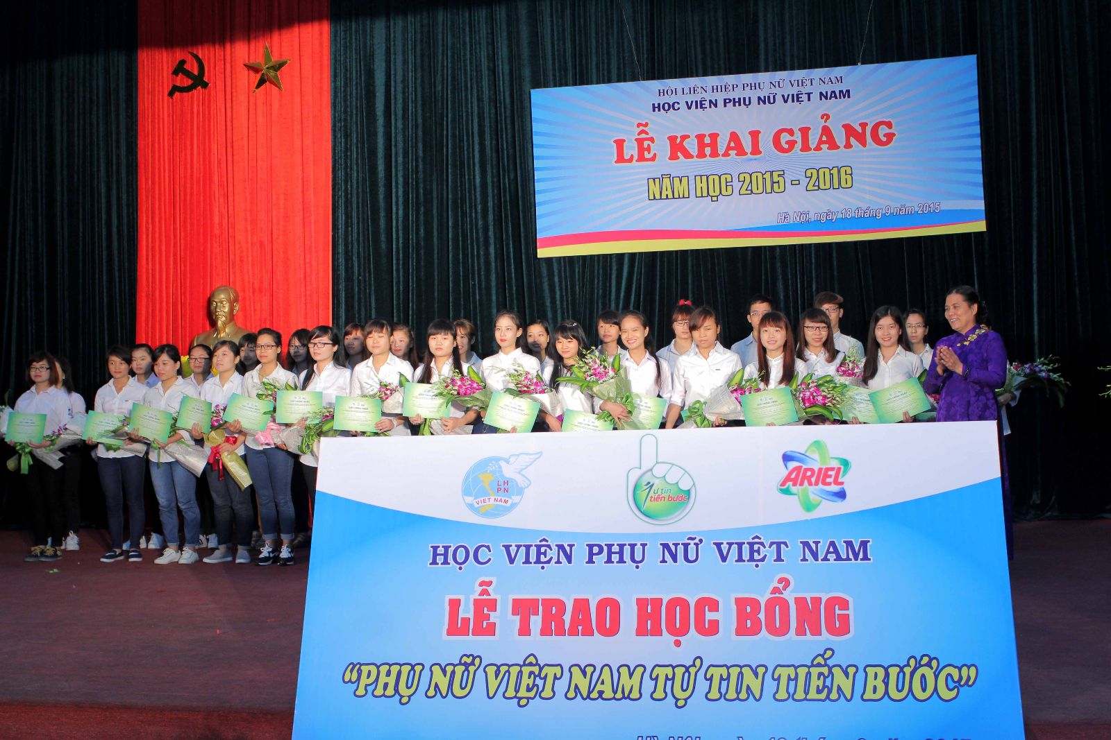Tại lễ khai giảng, Học viện đã trao tặng 35 suất học bổng “Phụ nữ Việt Nam tự tin vững bước”, 08 suất học bổng sinh viên khoa 1,2 và 7 suất học bổng sinh viên khóa 3 là thủ khoa trường và thủ khoa các ngành đào tạo của Học viện.