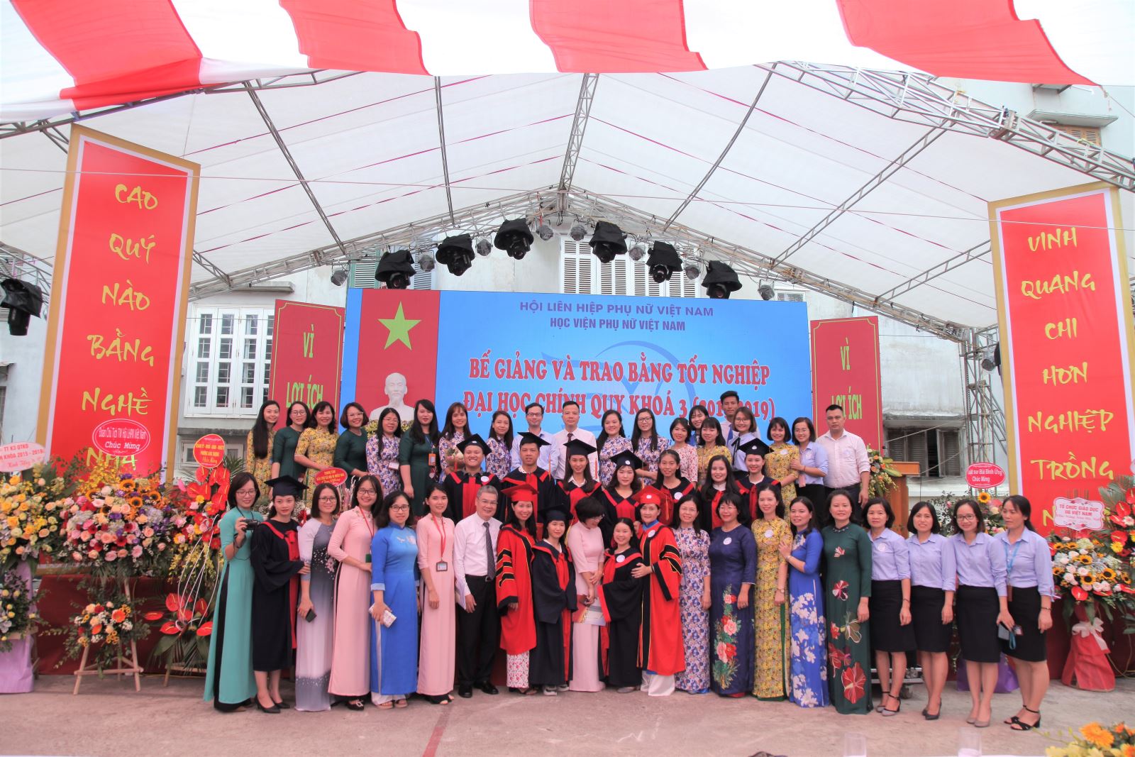 Sau Lễ khai giảng là lễ trao bằng tốt nghiệp đại học chính quy cho hơn 200 sinh viên khóa 3 (2015-2019) các ngành Giới và Phát triển, Luật, Công tác xã hội và Quản trị Kinh doanh.
