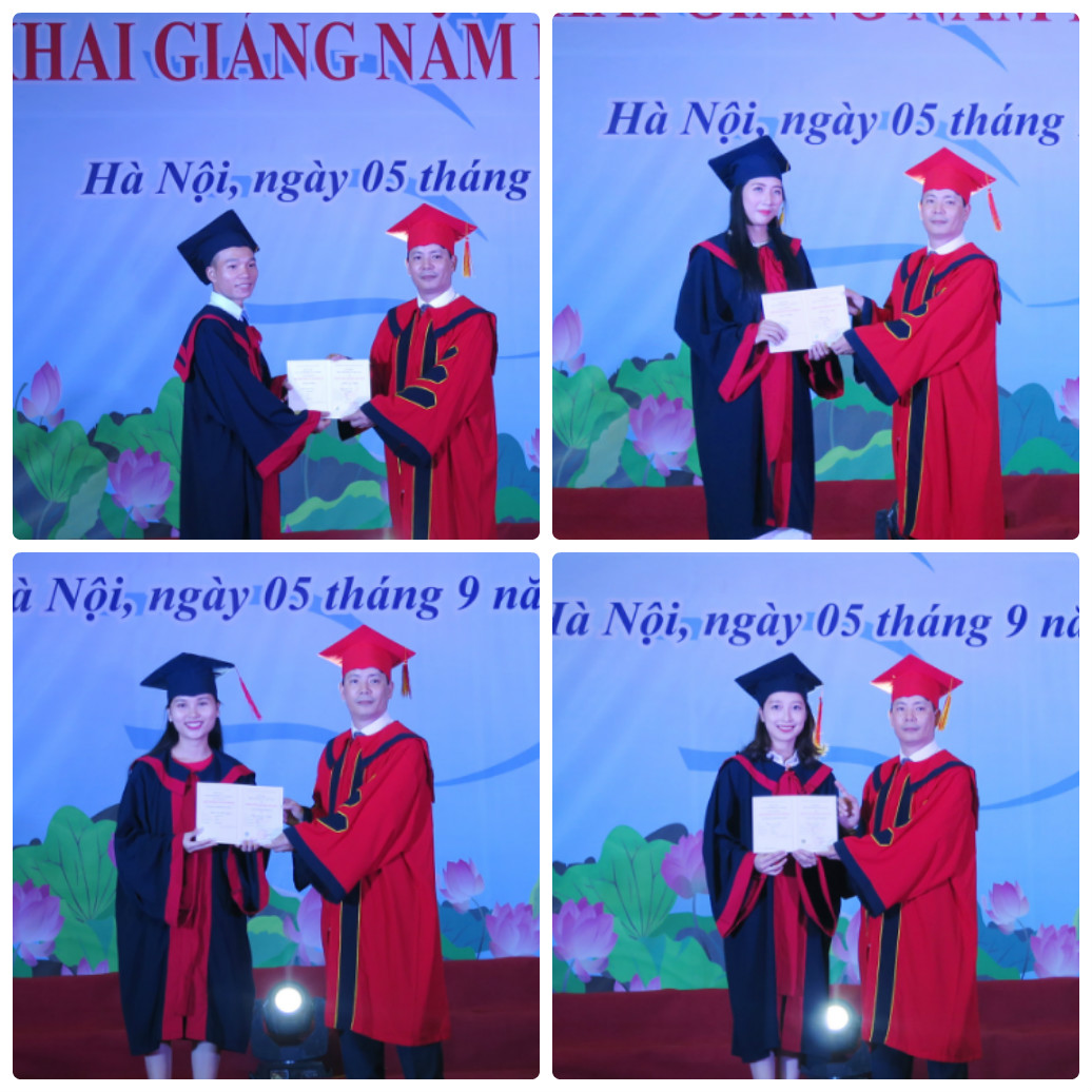 Ảnh: TS. Trần Quang Tiến trao bằng cử nhân cho sinh viên Khóa 1