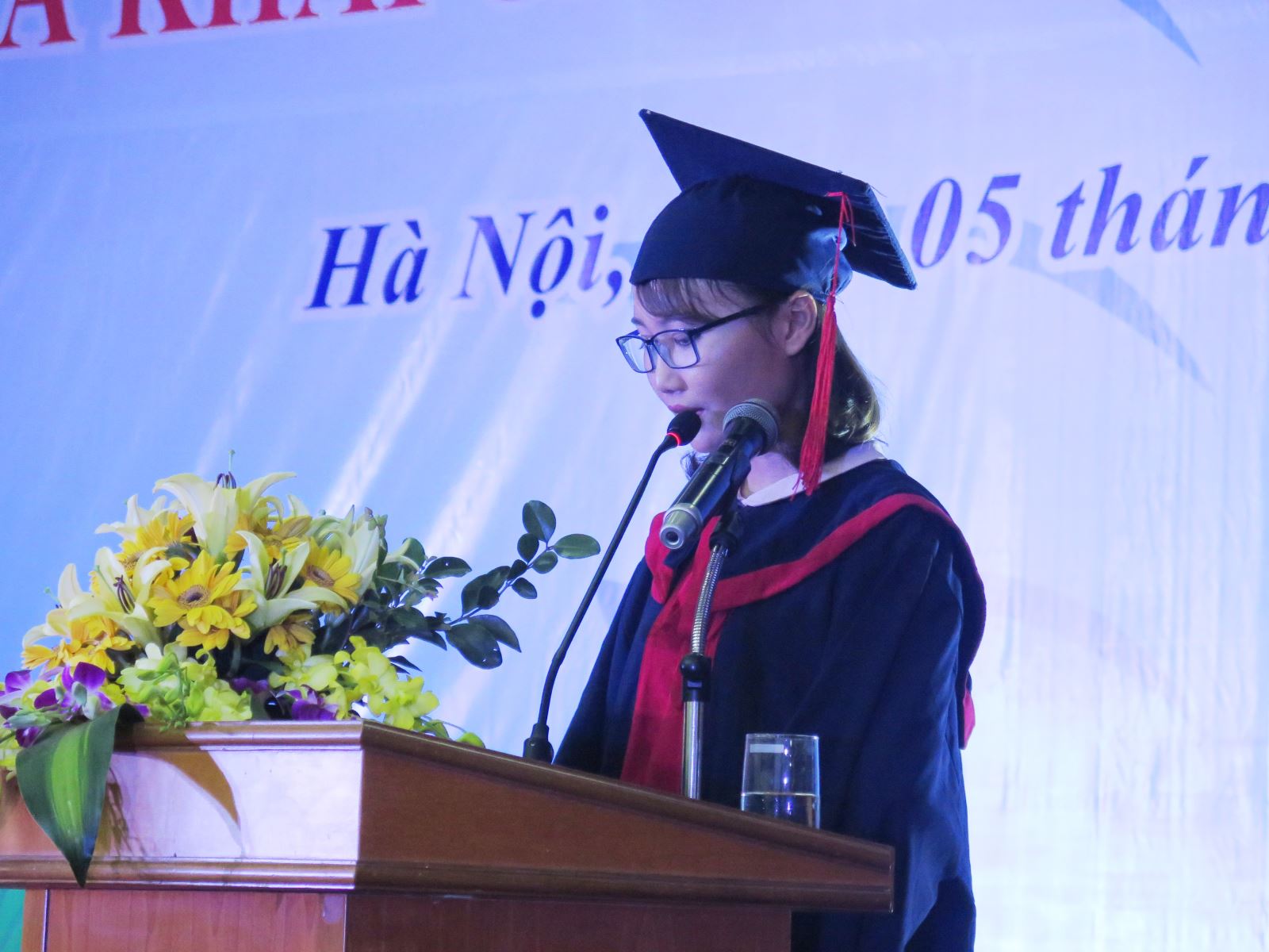 Đại diện tân cử nhân khóa I, em Bùi Ngọc Hà – Tốt nghiệp thủ khoa ngành Công tác xã hội đã xúc động gửi lời tri ân sâu sắc đến các thầy cô, những người lái đò tận tụy không quản khó khăn từ những ngày đầu gian khó cho đến hôm nay và xin hứa sẽ nỗ lực hết mình, mang những kiến thức đã được học áp dụng vào cuộc sống, không ngừng nâng cao trình độ và cống hiến cho xã hội những điều tốt đẹp nhất, không phụ lòng tin và kỳ vọng của học viện, gia đình.