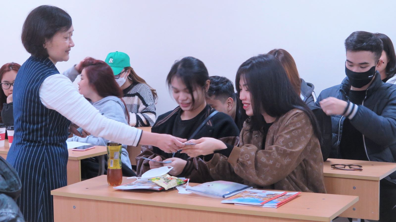 Cô Kiều Oanh – Giảng viên Viện CNTT cho biết: Buổi học đầu năm may mắn nhận được quà lì xì của Học viện ai cũng vui và phấn khởi. Món quà nhỏ đã mang lại sự ấm áp cho giảng viên và các bạn sinh viên. Hi vọng rằng may mắn sẽ đến với tất cả chúng ta và Học viện trong năm mới.