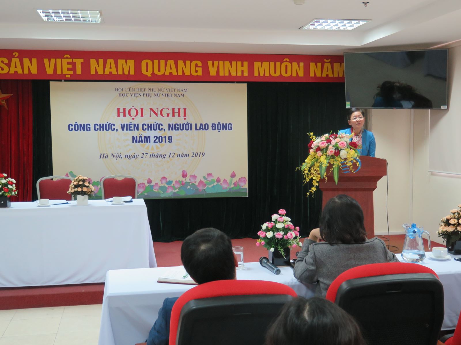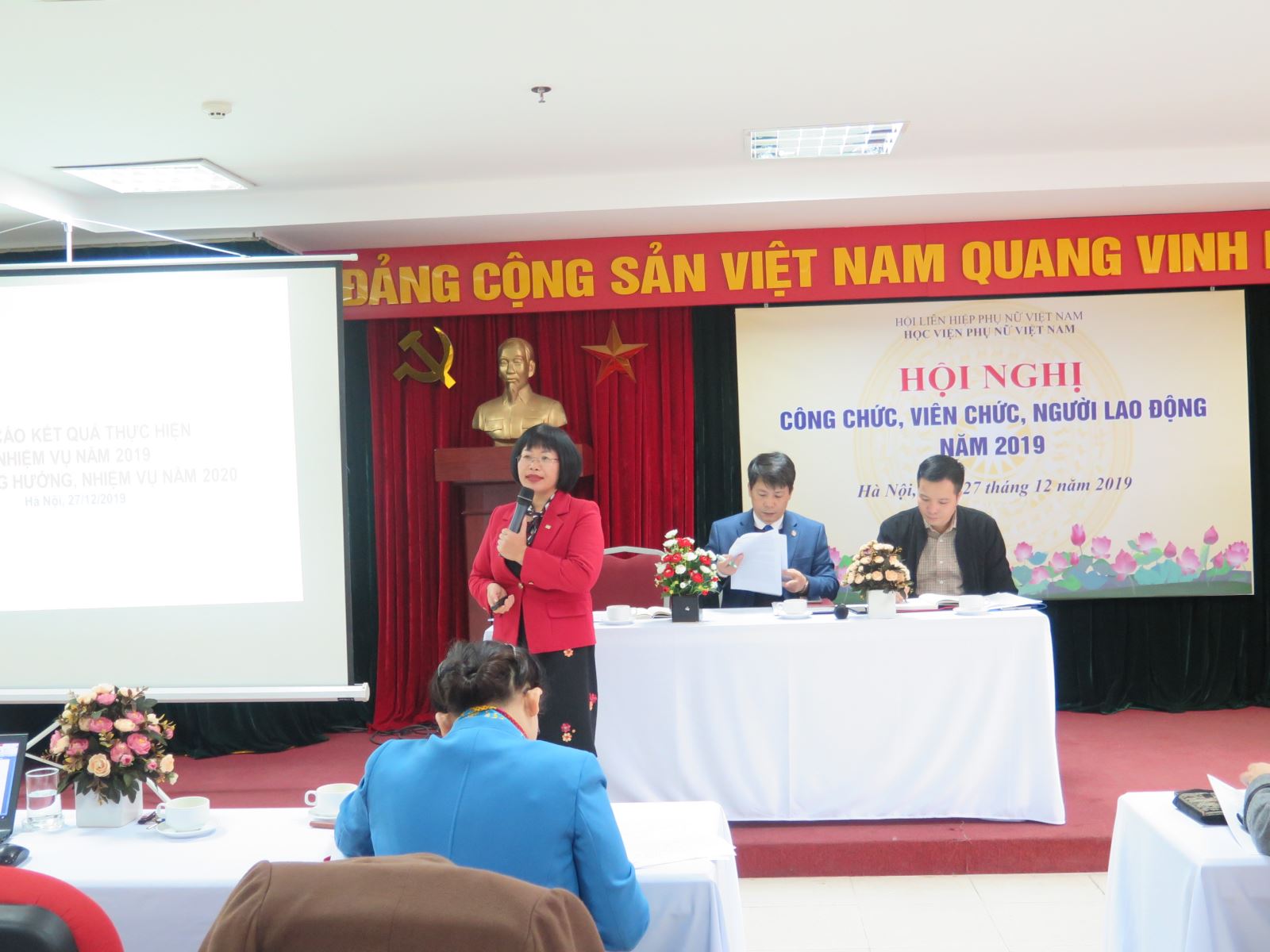 Đồng chí Trần Thị Hương, Phó Chủ tịch Hội Liên hiệp phụ nữ Việt Nam, Chủ tịch Hội đồng Học viện đã tham dự chỉ đạo hội nghị.