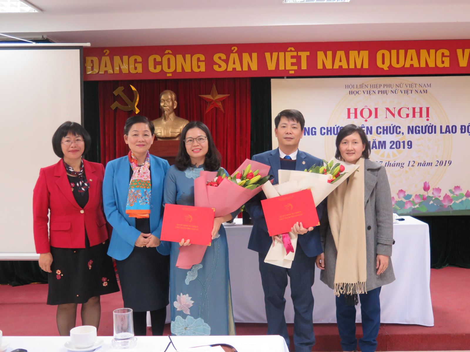 Với sự nỗ lực của toàn Học viện, năm 2019, Học viện vinh dự được nhận Cờ thi đua của Hội Liên hiệp Phụ nữ Việt Nam, bằng khen của Đoàn Chủ tịch Hội Liên hiệp Phụ nữ Việt Nam về thành tích hoàn thành xuất sắc nhiệm vụ, bằng khen của Học viện Chính trị quốc gia Hồ Chí Minh về thành tích đào tạo Trung cấp lý luận chính trị – hành chính và được Đoàn Chủ tịch Hội Liên hiệp Phụ nữ Việt Nam đề nghị Chính phủ tặng Cờ thi đua. 03 viên chức nhận bằng khen của Đoàn Chủ tịch Hội Liên hiệp Phụ nữ Việt Nam và 01 viên chức đạt danh hiệu chiến sĩ thi đua Hội Liên hiệp Phụ nữ Việt Nam.