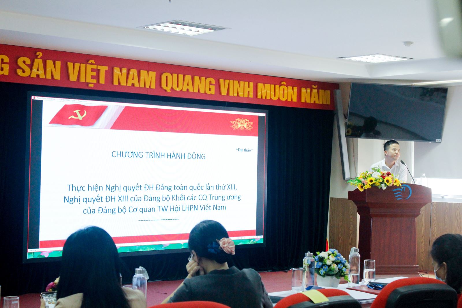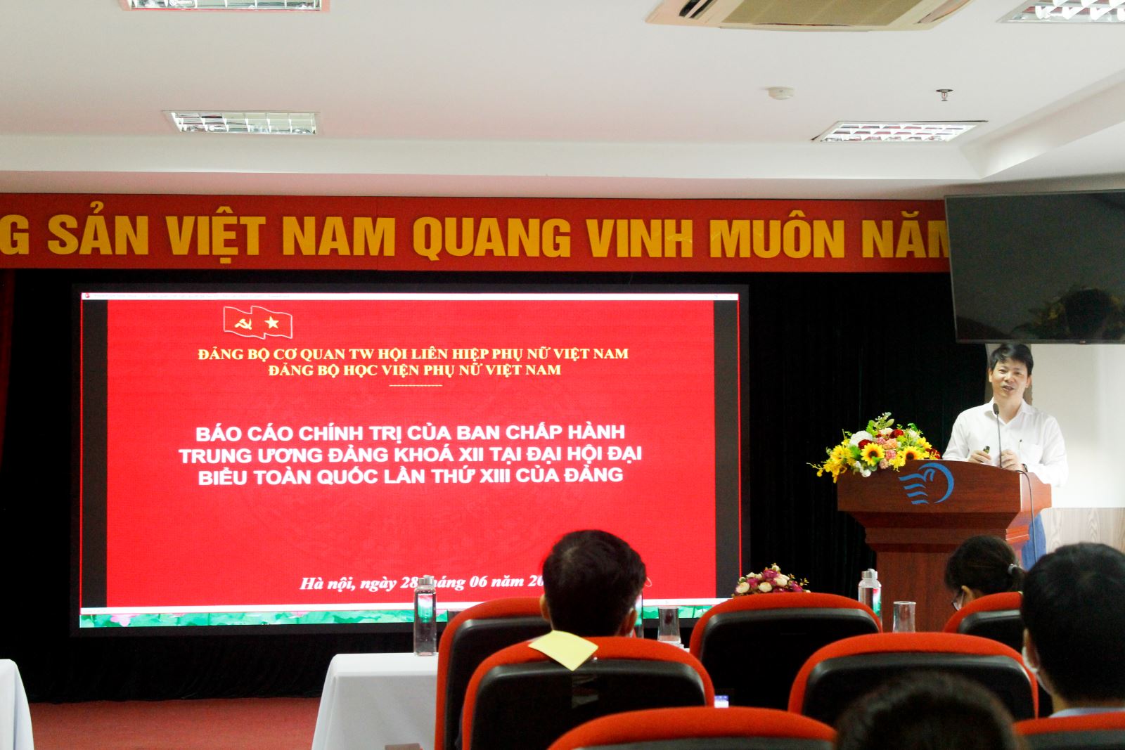 Tham dự và chỉ đạo Hội nghị có đồng chí Trần Quang Tiến, Ủy viên Ban chấp hành Đảng bộ Cơ quan TW Hội liên hiệp Phụ nữ Việt Nam, Bí thư Đảng ủy, Giám đốc Học viện; đồng chí Nguyễn Phi Long, Phó Bí thư Đảng ủy, Trưởng Phòng Đào tạo, cùng toàn thể các đồng chí đảng viên, quần chúng các Chi bộ.