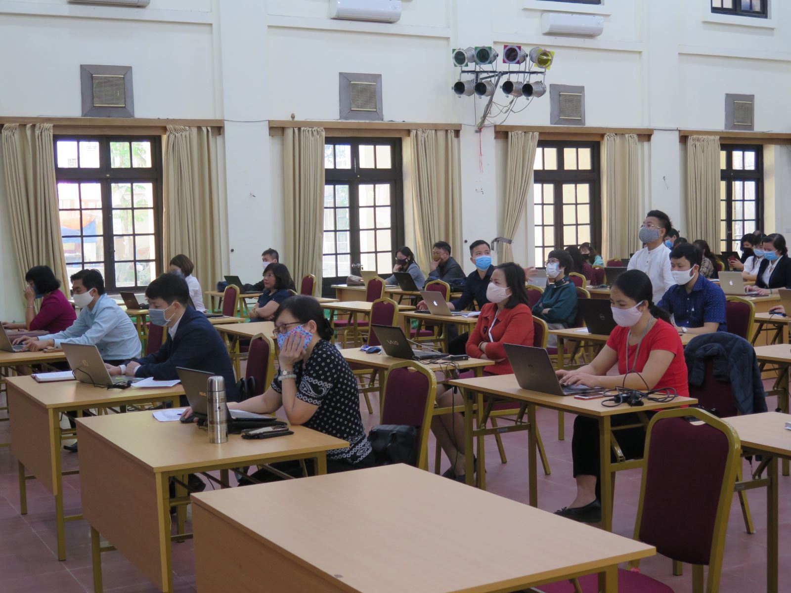 Tại hội nghị, TS. Lê Việt Thủy, Giám đốc Trung tâm Ứng dụng Công nghệ thông tin, trường Đại học Kinh tế Quốc dân đã chia sẻ khái quát về LMS (Learing Management System) là hệ thống quản lý học trực tuyến được phát triển và hoàn thiện để quản lý các chương trình đào tạo, các khóa học bảo đảm chất lượng, hiệu quả và giới thiệu hệ thống quản lý học tập trực tuyến của Học viện; hướng dẫn giảng viên thực hành các thao tác trên các lớp học đang giảng dạy về việc tạo các thông báo, các chủ đề học tập, tạo bài kiểm tra trắc nghiệm, tự luận, đăng tải tài liệu học tập, cách kết nối với sinh viên, cách tạo lớp học…
