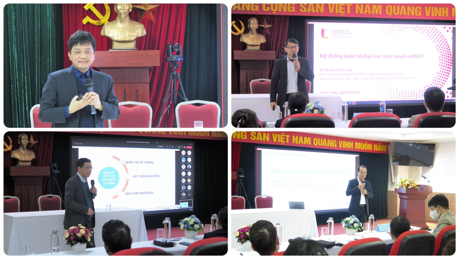 Ngoài ra, hội thảo cũng tập trung tìm hiểu, phân tích vào một số mô hình chuyển đổi số trong trường đại học tại Việt Nam và nước ngoài. Chia sẻ những kinh nghiệm chuyển đổi số trong đào tạo, ứng dụng công nghệ số trong quản trị trường đại học và phương pháp giảng dạy lấy người học làm trung tâm trong bối cảnh chuyển đổi số của các trường Đại học Bách khoa Hà Nội; Học viện Công nghệ Bưu chính Viễn thông; Học viện Ngân hàng, Đại học Thủy Lợi.