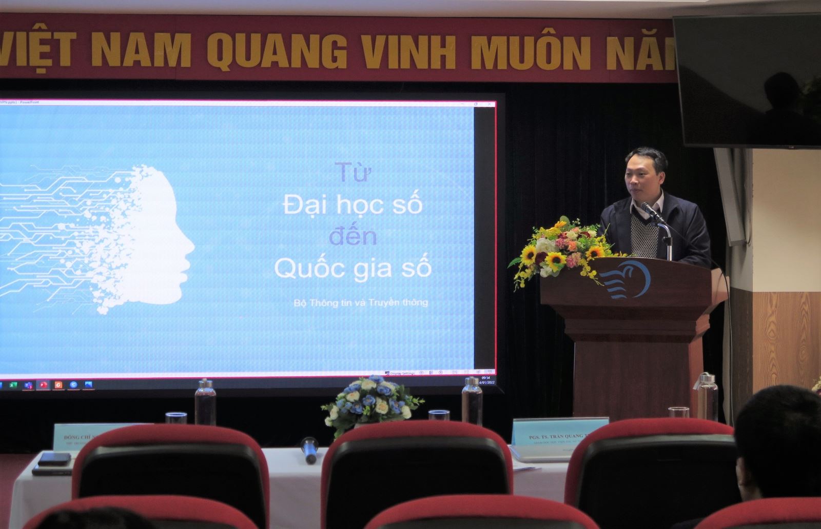Tại hội thảo, Thứ trưởng Bộ Thông tin Truyền thông Nguyễn Huy Dũng đã chia sẻ chuyên đề: Từ Đại học số đến Quốc gia số. Ngoài việc trao đổi về một số định hướng lớn của chiến dịch chuyển đổi số, thứ trưởng nhấn mạnh vai trò của thế hệ Gen Z là lớp sinh viên đang ngồi trên ghế giảng đường đại học hiện nay trong tổng quan thúc đẩy, chiếm lĩnh công nghệ chuyển đổi số tương lai. Chuyển đổi số không chỉ là vấn đề công nghệ mà nó còn là vấn đề nhận thức và thói quen. Đại học số không chỉ là giảng dạy thông qua các ứng dụng hội nghị truyền hình mà là sự tổng hòa, kết hợp giữa hạ tầng số, nền tảng số, dữ liệu số, học liệu số, ứng dụng dịch vụ, giảng viên số, sinh viên số. Ông Nguyễn Huy Dũng cũng chia sẻ thông tin về Đề án triển khai thí điểm đại học số đảm bảo tích hợp đầy đủ những ưu thế vượt trội về công nghệ thành một hệ thống liên kết hoàn chỉnh đào tạo được những sinh viên thực sự là doanh nhân, là chính khách kỹ trị chủ động và sáng tạo.