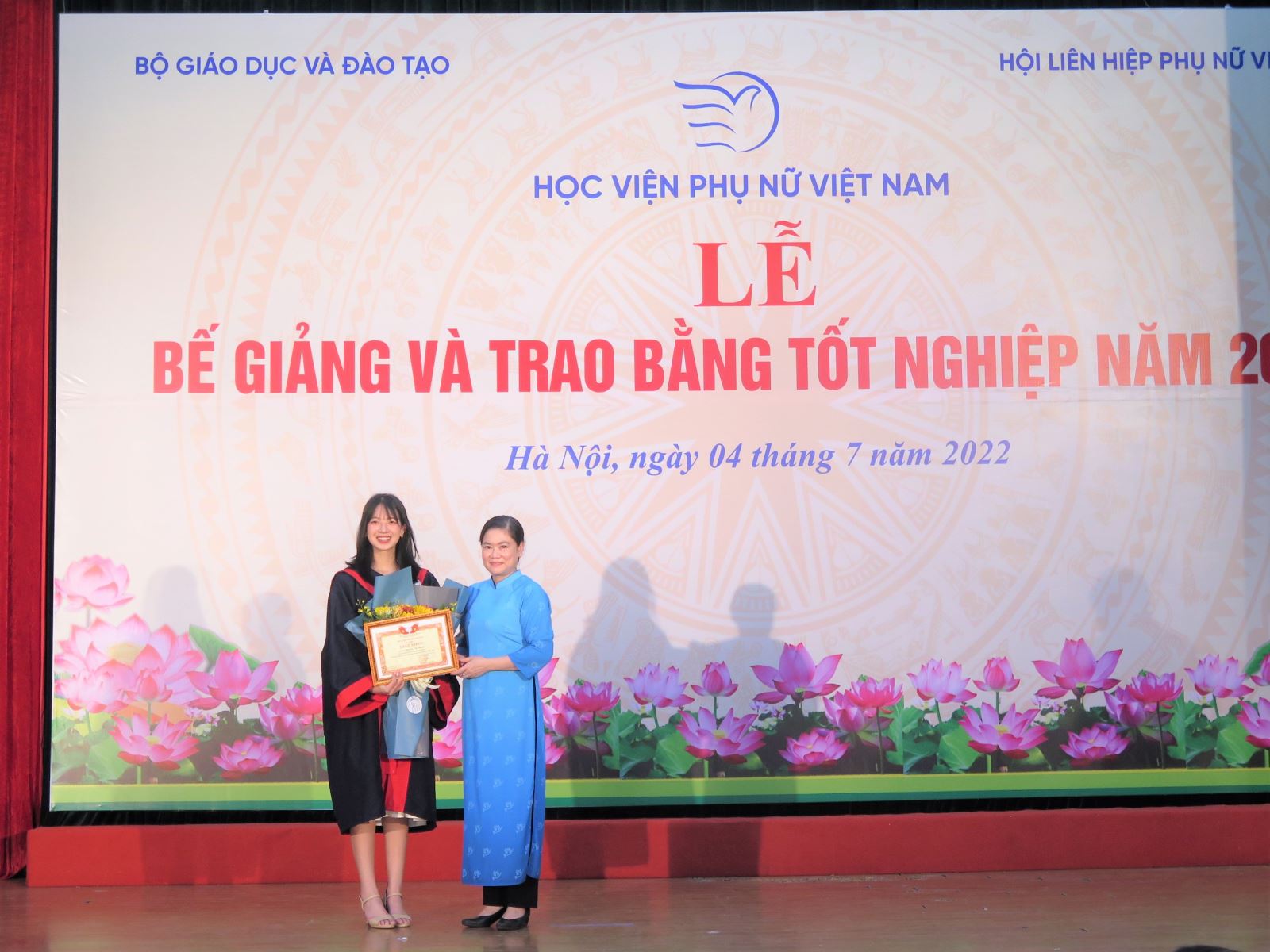 Phó Giám đốc Dương Kim Anh trao bằng tốt nghiệp cho cử nhân Giới và Phát triển