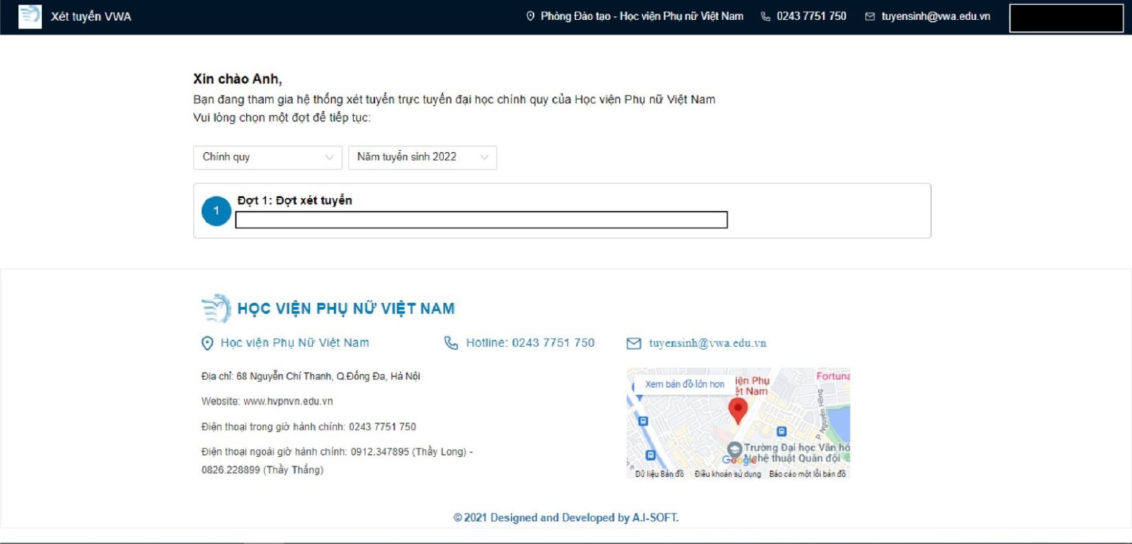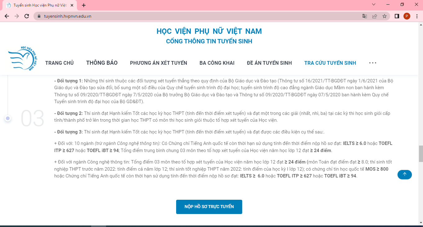 Bước 1: Truy cập vào website Tuyển sinh của Học viện Phụ nữ Việt Nam:
