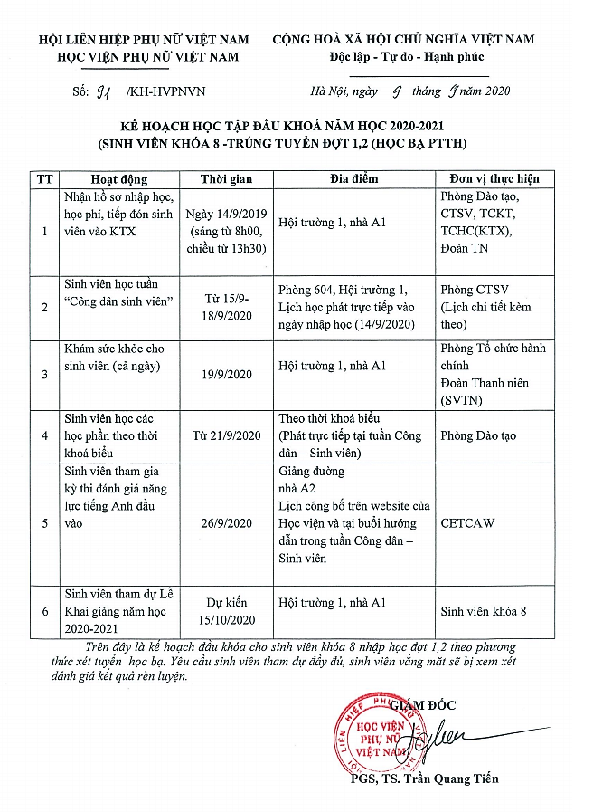 Tin tứcKế hoạch học tập dành cho SV K8 năm học 2020 – 2021 Posted on Tháng Ba 4, 2024 by admin(full) 04 Th3 admin(full) Thông báo về việc thu hồ sơ xét chế độ chính sách cho sinh viên K8 HK1, năm học 2020-2021 Thông báo kế hoạch nhập học của SV Khóa 8