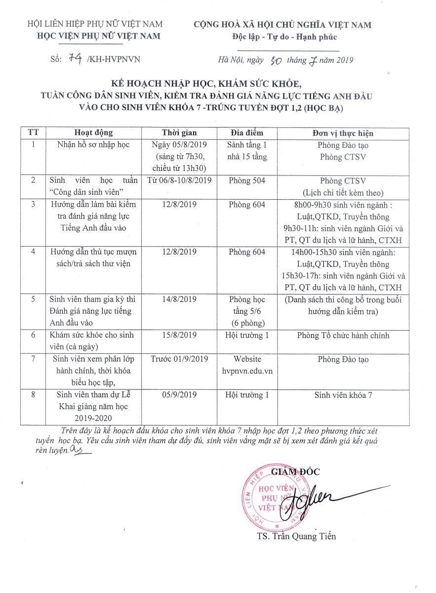 Tin tứcKế hoạch nhập học dành cho sinh viên khóa 7 trúng tuyển đợt 1,2 (học bạ) Posted on Tháng Ba 4, 2024 by admin(full) 04 Th3 admin(full) Học viện Phụ nữ Việt Nam tổ chức tập huấn nâng cao năng lực viên chức, người lao động năm 2019 Danh sách sinh viên đăng ký nội trú HKI năm học 2019 – 2020