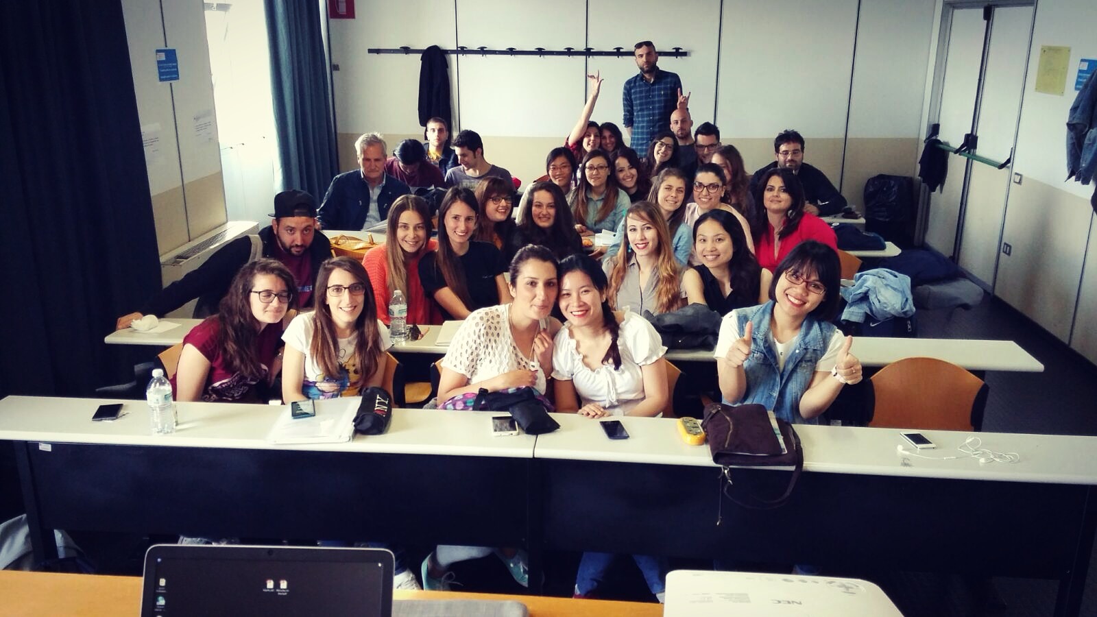 Tác giả (áo jean xanh ngồi bàn đầu) trong thời gian du học tại Italia