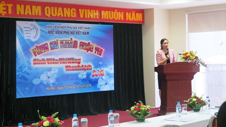 Phát biểu khai mạc vòng sơ khảo, Phó giám đốc Hà Thị Thanh Vân – Trưởng Ban tổ chức cuộc thi đã nhấn mạnh mục đích, ý nghĩa cùng những kỳ vọng của Ban tổ chức đối với các thí sinh tham dự. Không chỉ tạo diễn đàn cho sinh viên các ngành, các khóa được trải nghiệm, giao lưu, học hỏi, cuộc thi còn là dịp phát hiện, tôn vinh vẻ đẹp toàn diện về trí tuệ, tài năng và ngoại hình của sinh viên; phát hiện, bồi dưỡng và phát huy năng lực sinh viên. Trên cơ sở đó, kết quả cuộc thi sẽ góp phần xây dựng và quảng bá hình ảnh sinh viên Học viện Phụ nữ Việt Nam năng động, tự tin, tài năng và sáng tạo. Phó Giám đốc Hà Thị Thanh Vân chúc các thí sinh bình tĩnh, tự tin và đạt kết quả tốt trong phần dự thi tại vòng sơ khảo.