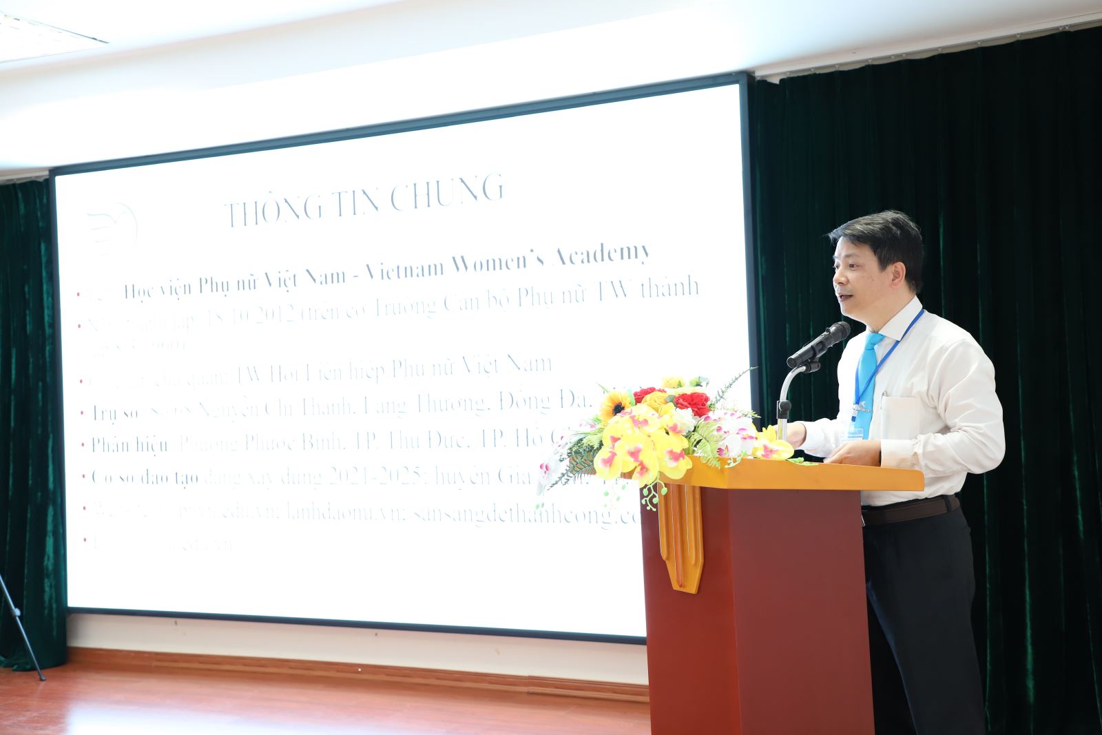 Tiếp và làm việc với Đoàn chuyên gia ĐGN, về phía Học viện Phụ nữ Việt Nam có PGS.TS. Trần Quang Tiến – Giám đốc Học viện, TS. Dương Kim Anh – Phó Giám đốc Học viện, ThS. Hà Thị Thanh Vân – Phó Giám đốc Học viện. 3 phó chủ tịch Hội đồng tự đánh giá: TS. Nguyễn Hùng Cường – Trưởng khoa Quản trị kinh doanh; PGS.TS. Đoàn Thị Thanh Huyền – Trưởng khoa Công tác xã hội; TS. Kiều Thị Thuỳ Linh – Trưởng khoa Luật, và các lãnh đạo, cán bộ và viên chức, người lao động của Học viện.