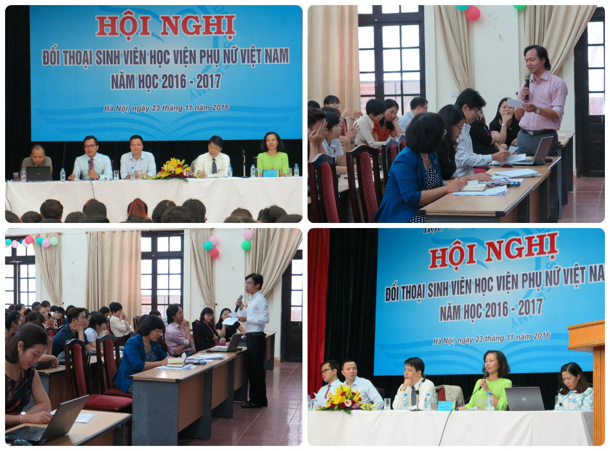 Tham dự buổi đối thoại có TS. Trần Quang Tiến – Bí thư Đảng ủy, Giám đốc Học viện, lãnh đạo các đơn vị thuộc học viện và hơn 200 sinh viên đại diện cho trên 1000 sinh viên của các khoa Công tác xã hội, Quản trị kinh doanh, Luật, Giới & Phát triển.
