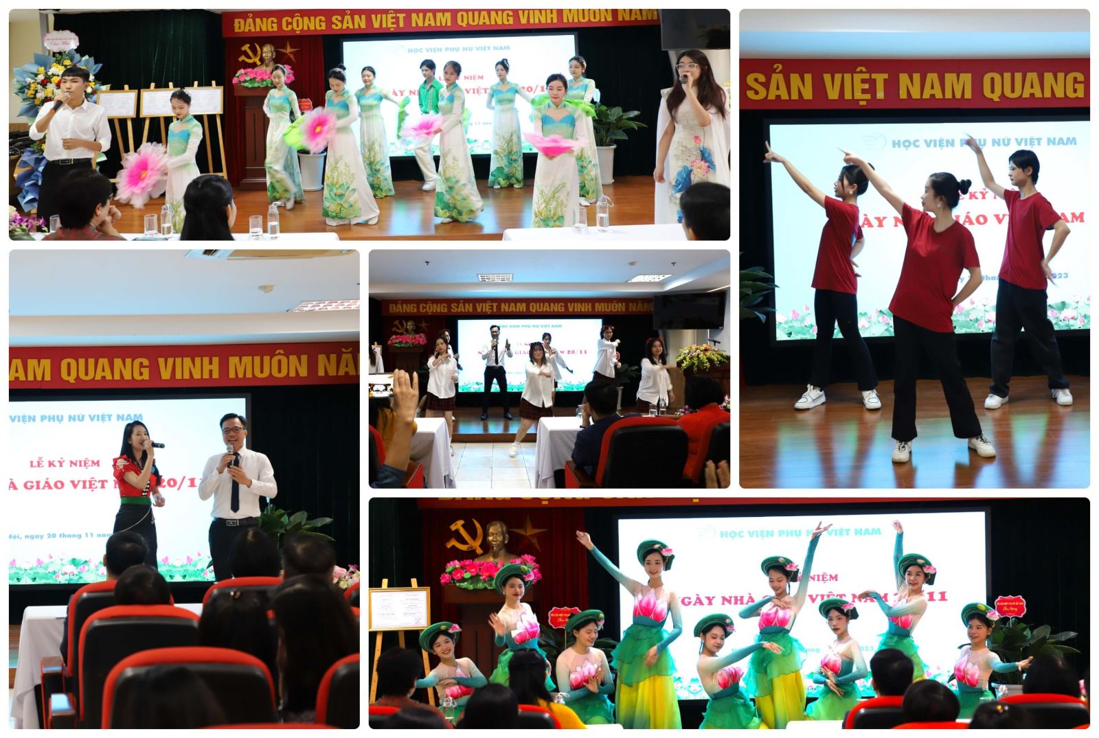 Mở đầu buổi lễ kỉ niệm là những tiết mục văn nghệ sôi động, ý nghĩa do giảng viên và sinh viên Học viện thể hiện. Các tiết mục mang màu sắc vui tươi, trẻ trung thể hiện tình cảm sâu sắc của lớp lớp học trò đối với thầy cô và lòng yêu nghề của thầy cô dẫu trải qua biết bao khó khăn, vất vả.