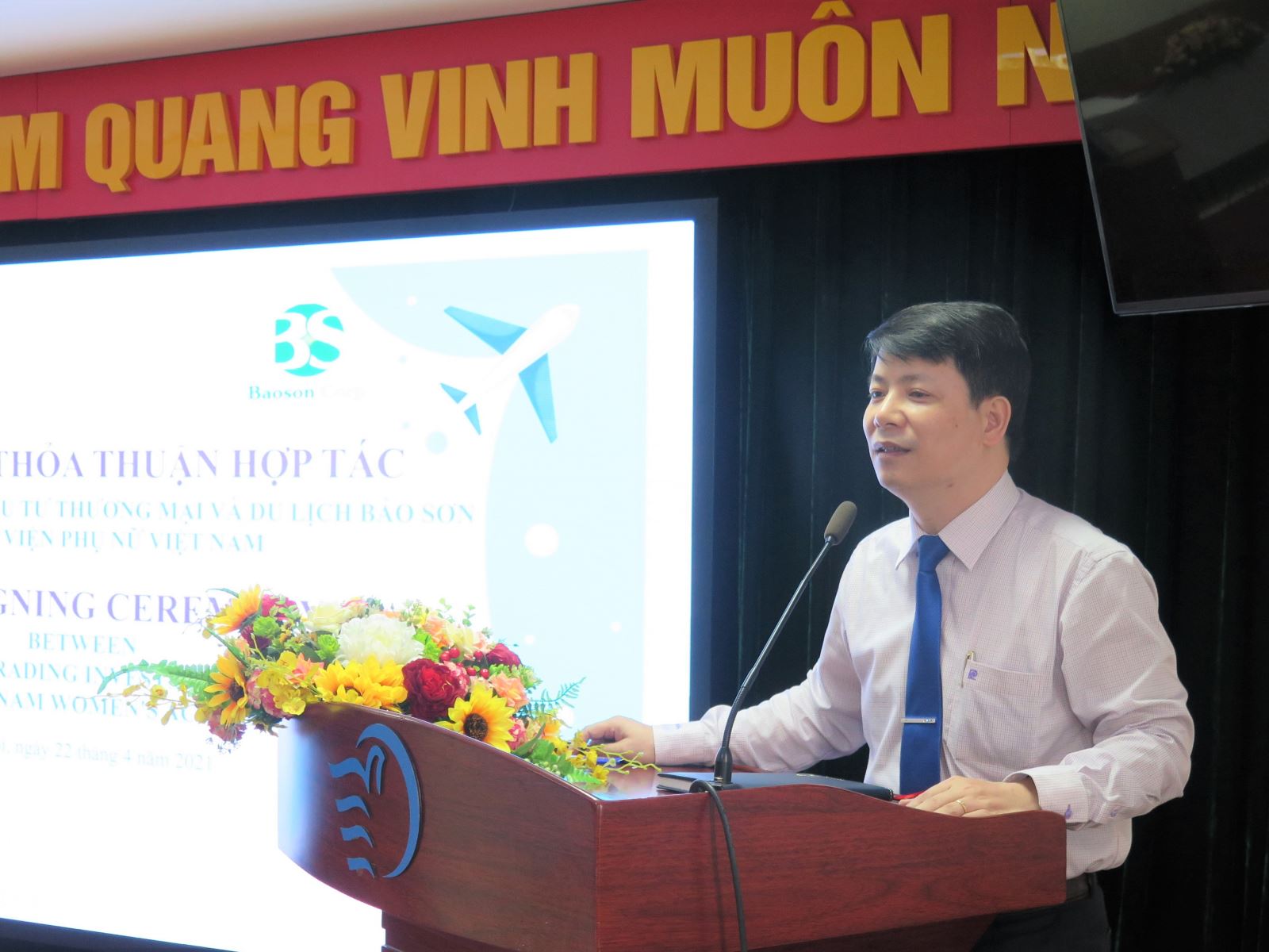 Phát biểu khai mạc lễ ký kết, PGS.TS Trần Quang Tiến khẳng định, đứng trước sự thay đổi nhanh chóng của nhu cầu thị trường lao động các trường đại học nói chung và Học viện Phụ nữ Việt Nam nói riêng đã có những thay đổi từ nội dung, phương pháp, hình thức đào tạo đến các thức quản trị đại học. Với mục tiêu giáo dục toàn diện, chất lượng, bình đẳng, Học viện Phụ nữ Việt Nam đã ký kết trên 50 biên bản ghi nhớ hợp tác với các đơn vị, tổ chức doanh nghiệp trong và ngoài nước đồng thời không ngừng vận động nhằm thay đổi phương pháp dạy học hướng đến việc đào tạo sinh viên đáp ứng nguồn nhân lực chất lượng cao, phù hợp với nhu cầu xã hội. Ngoài ra, mục tiêu thương mại hóa, ứng dụng kết quả nghiên cứu khoa học ra phạm vi bên ngoài học viện cũng là một điểm nhấn trong mô hình kết nối trường đại học và doanh nghiệp. Đặc biệt, trong mối quan hệ hai chiều, dựa trên nền tảng nghiên cứu, giảng dạy, thực hành, Học viện Phụ nữ Việt Nam hi vọng sẽ tham gia tư vấn chiến lược, tư vấn quản lý, xây dựng chính sách,… để thúc đẩy sự phát triển của doanh nghiệp đối tác và nâng cao hiệu quả hợp tác giữa hai bên. Lễ ký kết hôm này là khởi đầu cho chuỗi các hoạt động phối hợp toàn diện từ: đào tạo, trao đổi sinh viên, thực tập, việc làm cho đến hỗ trợ sinh viên kỹ năng mềm, du học…giữa Học viện Phụ nữ Việt Nam và Tập đoàn Bảo Sơn.