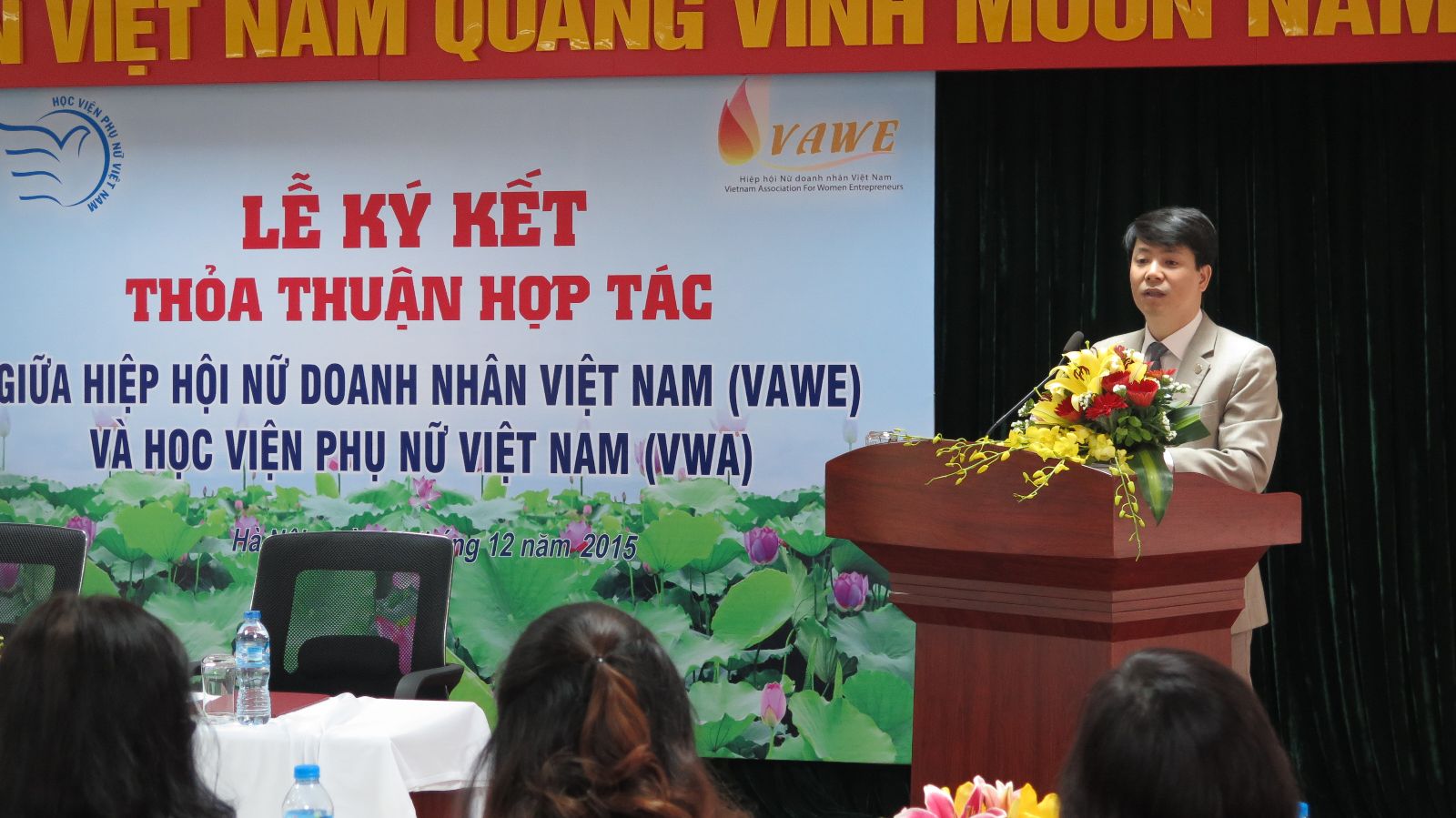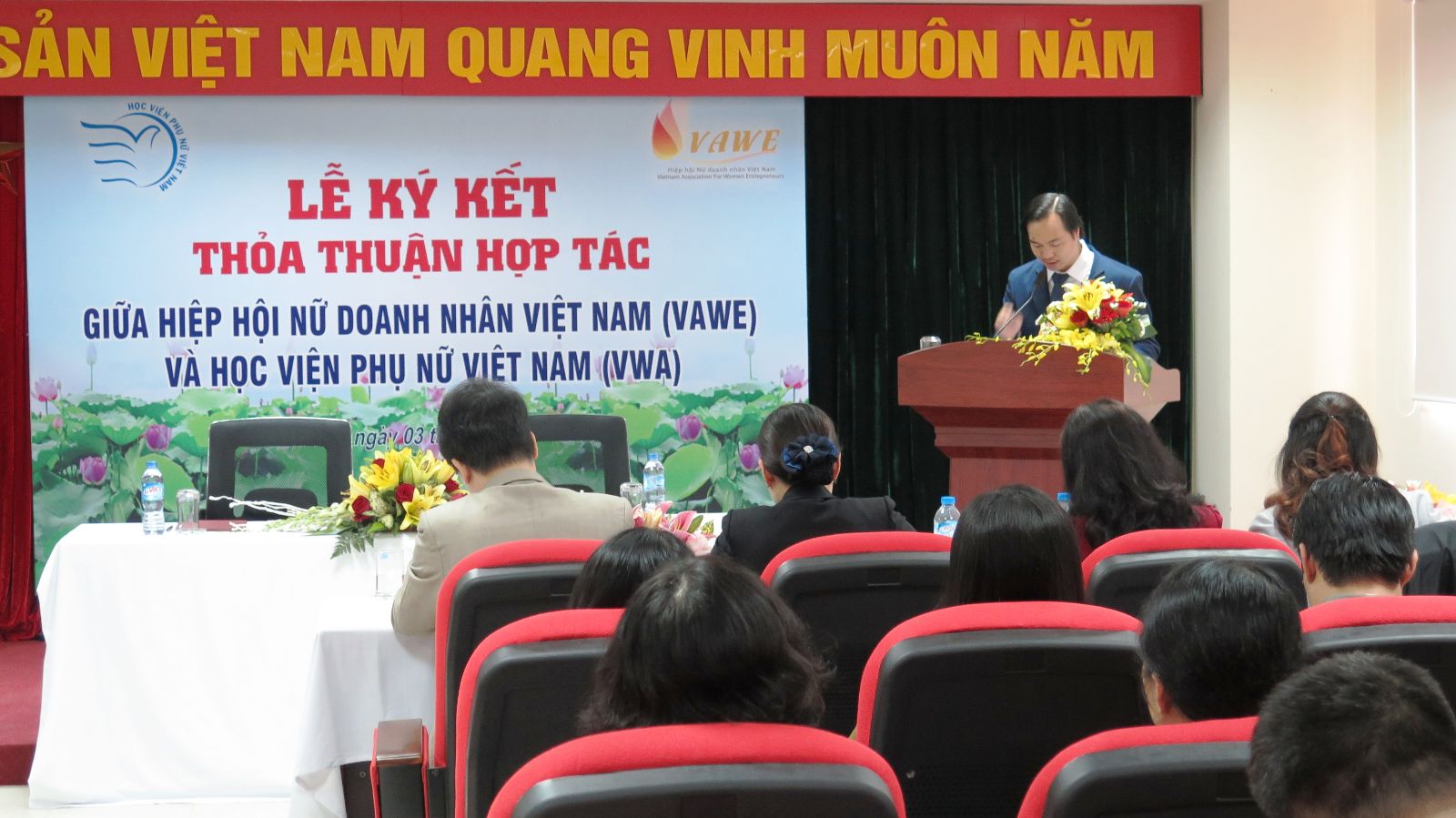 Cũng trong buổi lễ ký kết này, TS. Trần Quang Tiến, Giám đốc Học viện cho biết: “Lễ ký kết thỏa thuận hợp tác giữa VWA và VAWE là bước khởi đầu giữa hai đơn vị có chung một mục tiêu vì sự tiến bộ của phụ nữ và bình đẳng giới. Sự kiện này đem đến cho VWA những cơ hội hỗ trợ, liên kết trong đào tạo, bồi dưỡng, nghiên cứu…”. Giám đốc cũng hi vọng mối quan hệ hợp tác giữa đôi bên ngày càng bền vững và khăng khít.