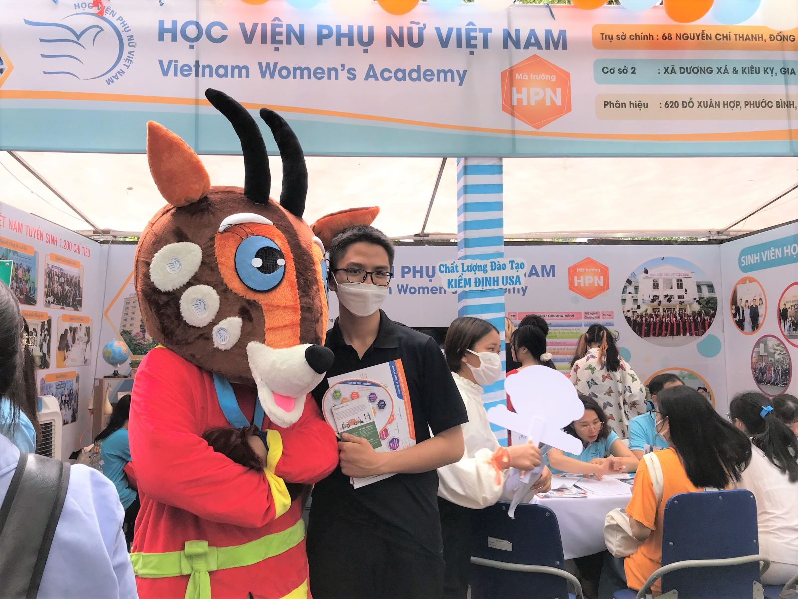 Học viện Phụ nữ Việt Nam đăng ký tham gia với 2 gian hàng tại ngày hội tuyển sinh. Các thí sinh và phụ huynh sẽ được các giảng viên, sinh viên của Học viện đón tiếp và tư vấn chi tiết về 11 ngành đào tạo, về các hình thức đào tạo (thạc sĩ, đại học chính quy, liên thông, liên kết quốc tế, chất lượng cao, song ngành) của Học viện. Những chính sách ưu đãi về học phí, các chương trình học bổng, du học, chương trình ngoại khóa và các câu lạc bộ dành cho sinh viên…