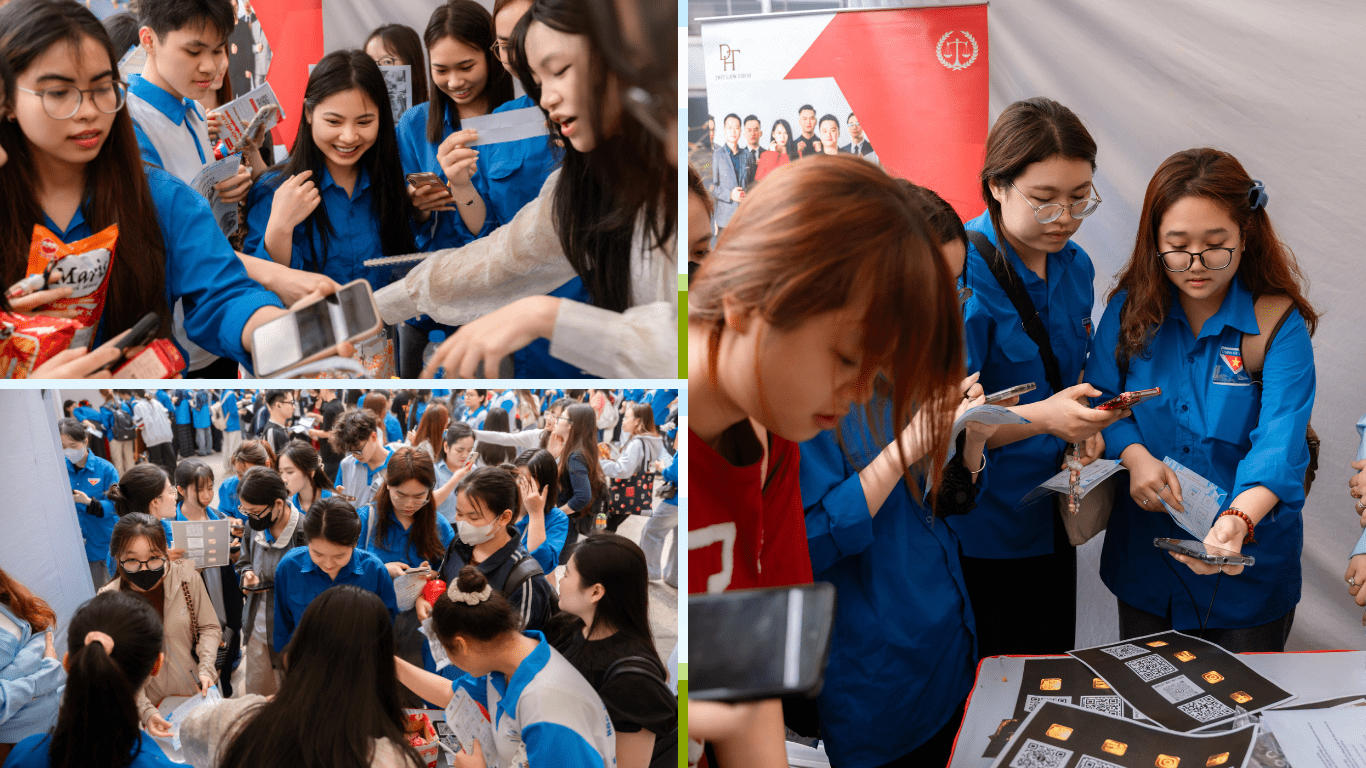 Sinh viên tham gia các hoạt động tại gian hàng của Công ty Luật TNHH Đại Hà Thành