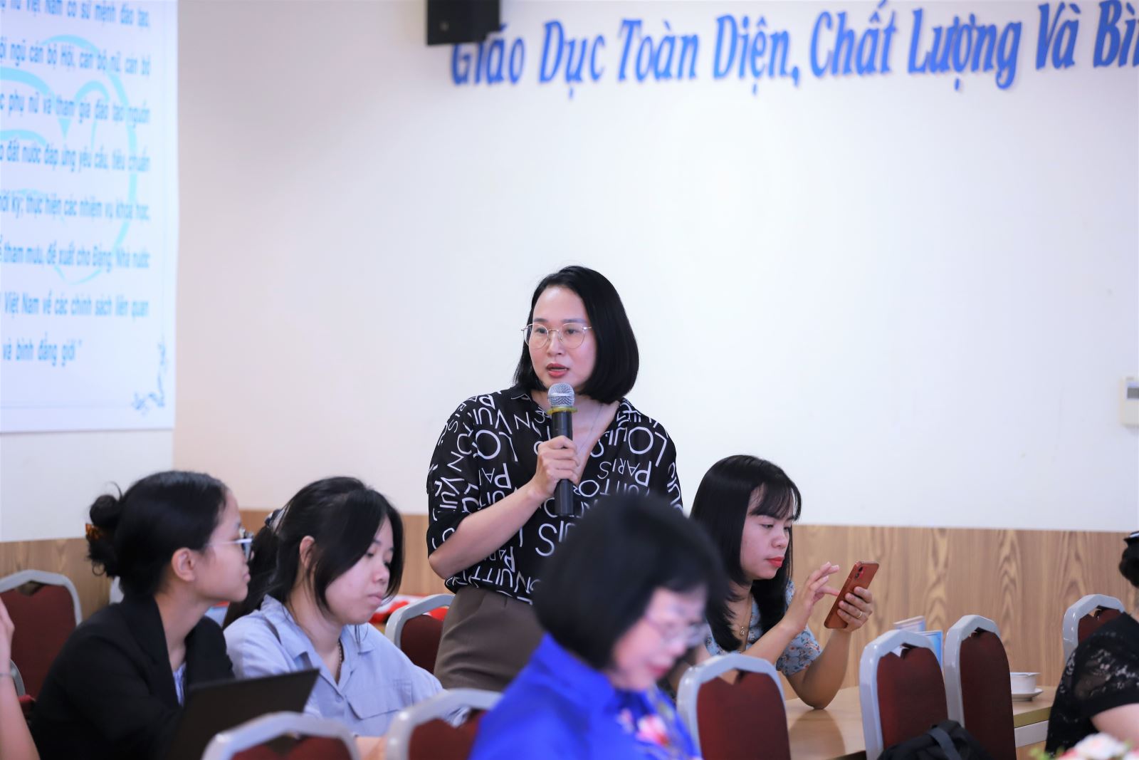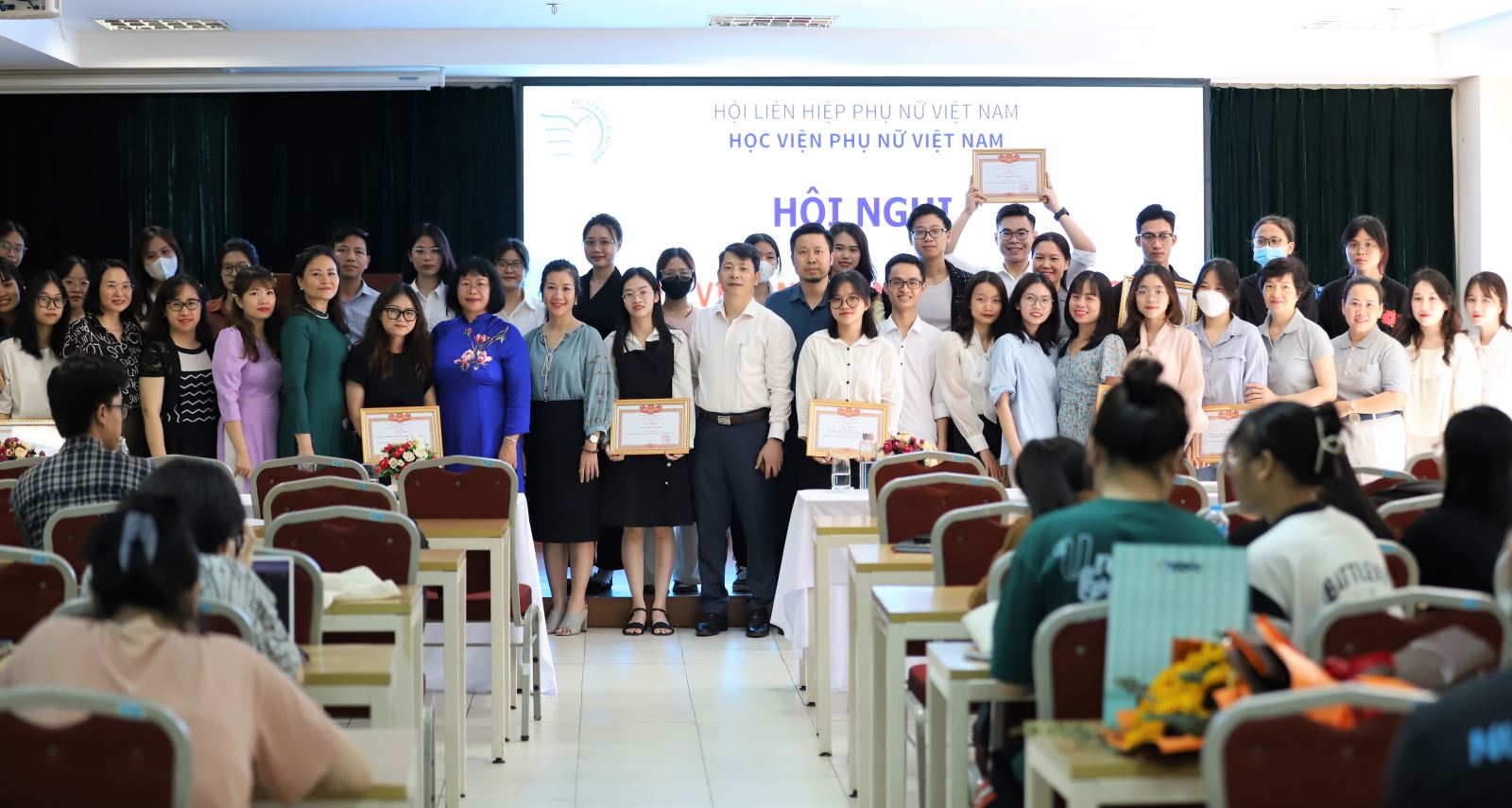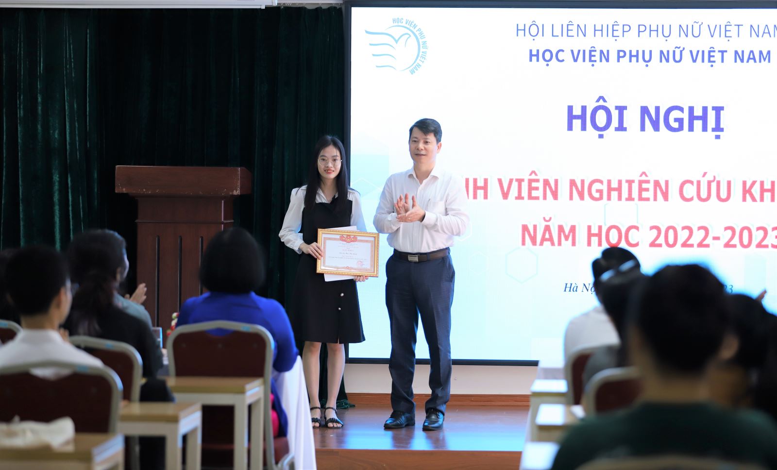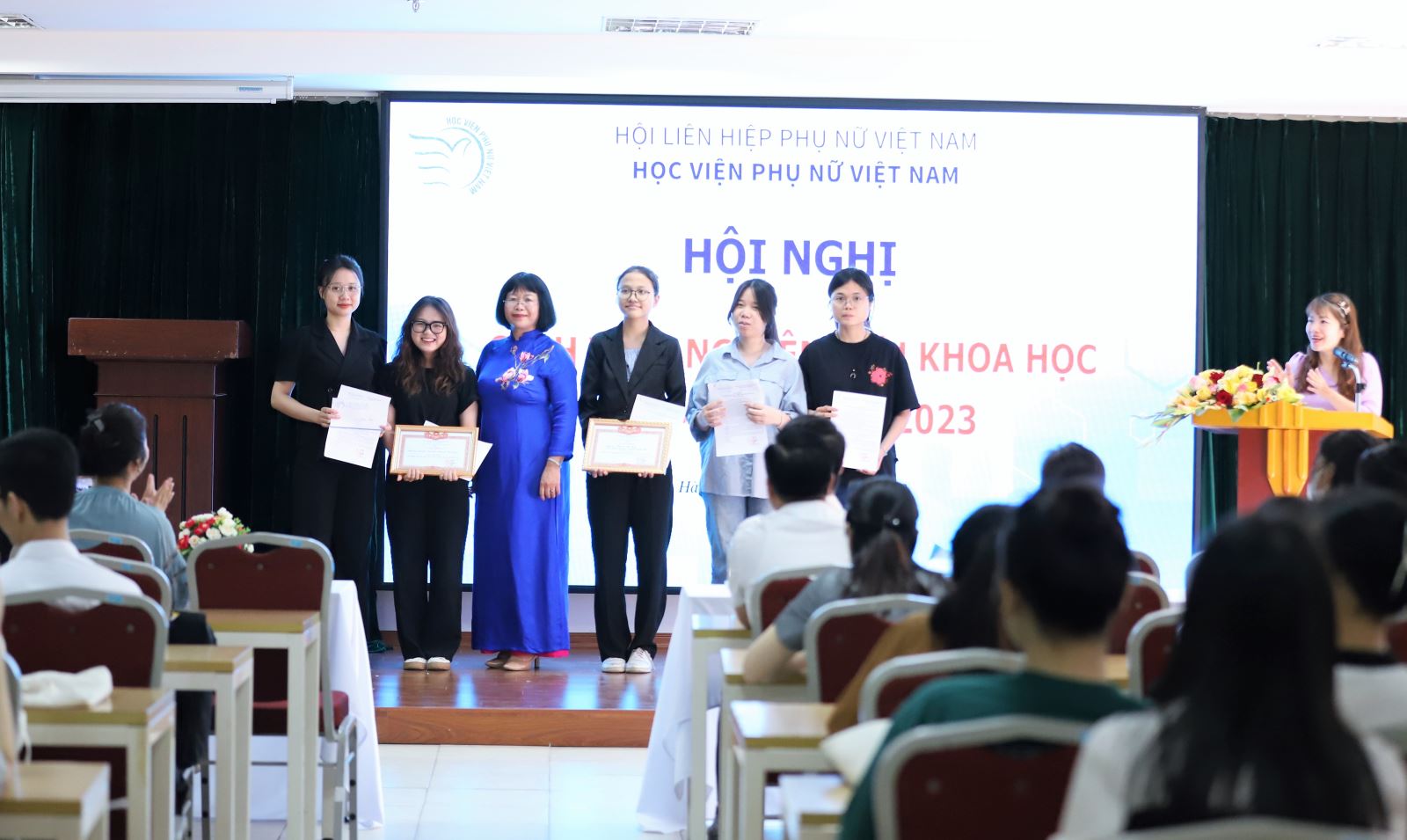 NCS. Nguyễn Phương Chi – Phó Trưởng phòng HTQT và QLKH đã trình bày Báo cáo tổng kết hoạt động NCKH sinh viên năm học 2022-2023 của Học viện Phụ nữ Việt Nam