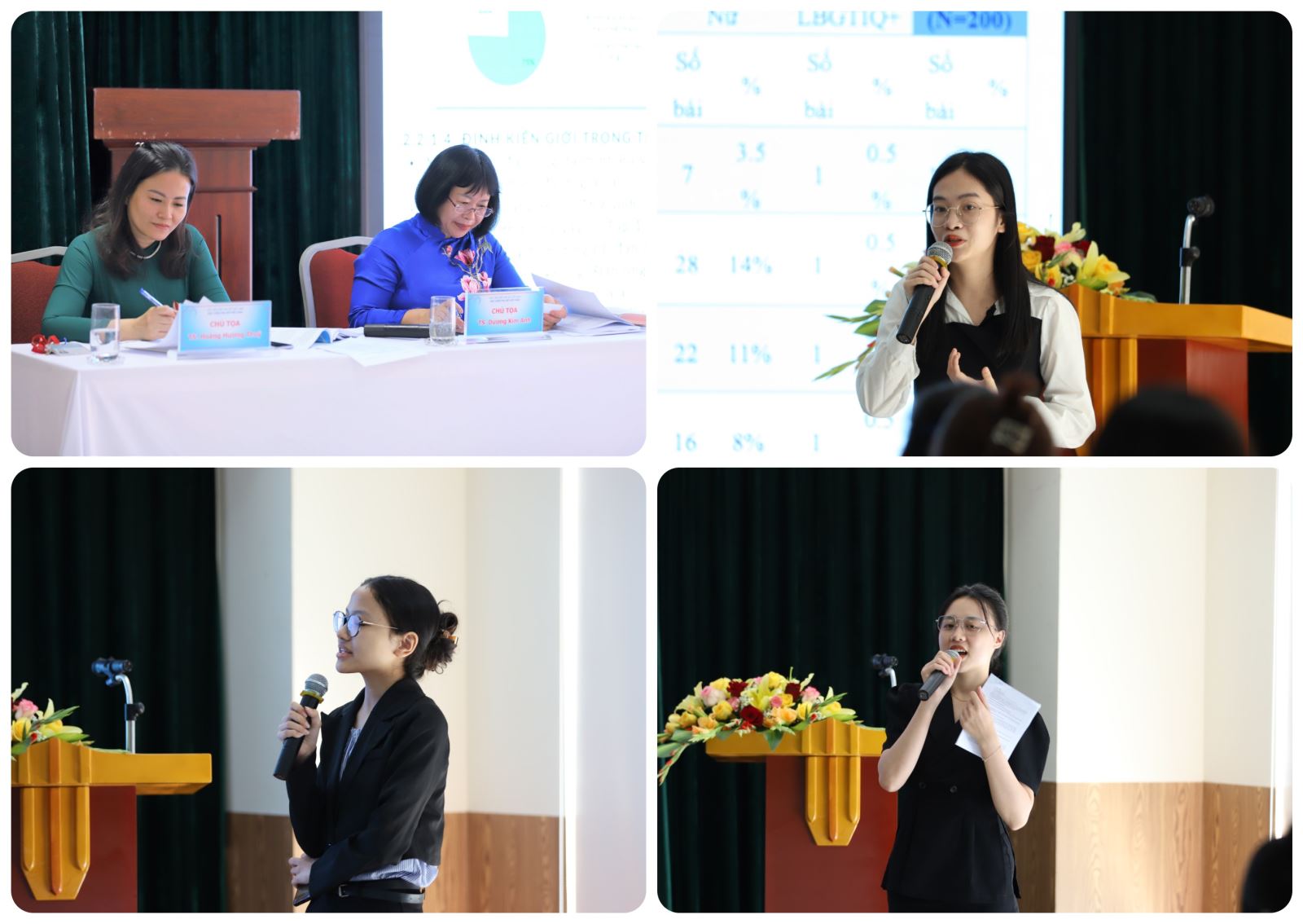 Các cá nhân và đại diện nhóm SV NCKH trình bày kết quả nghiên cứu tại Hội thảo công bố kết quả NCKH